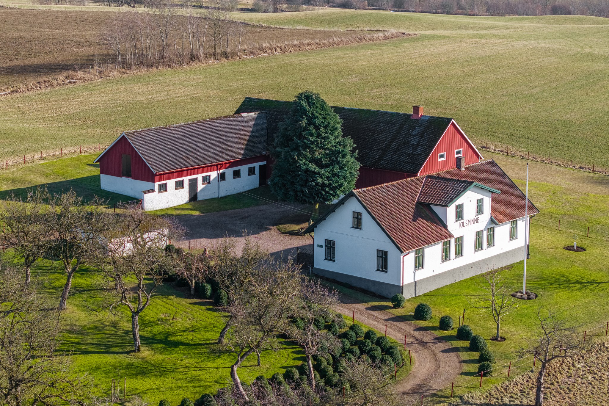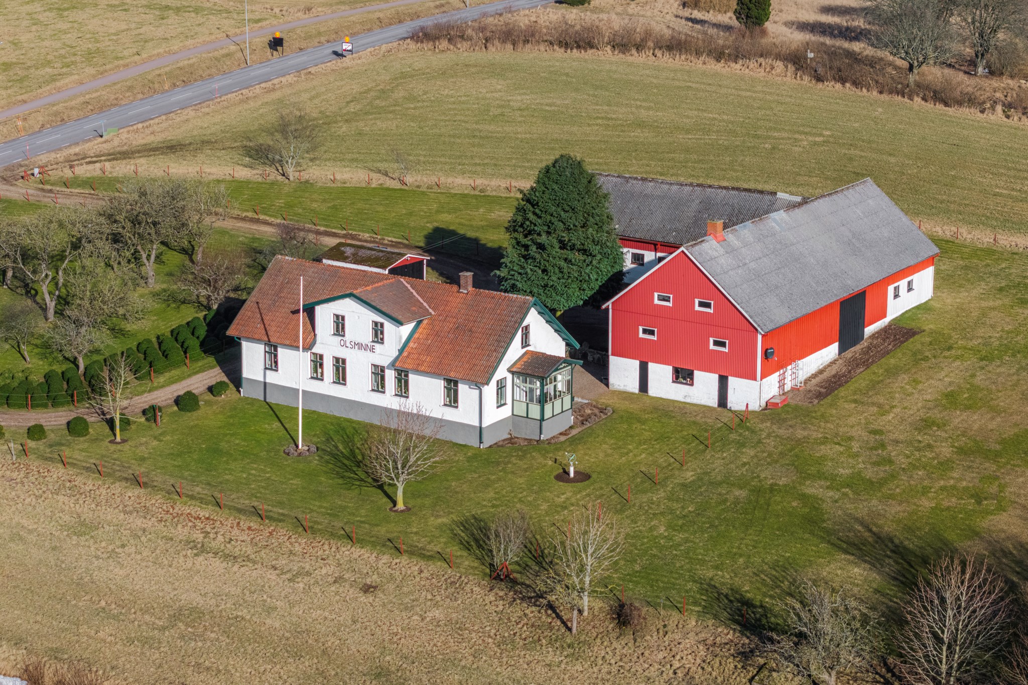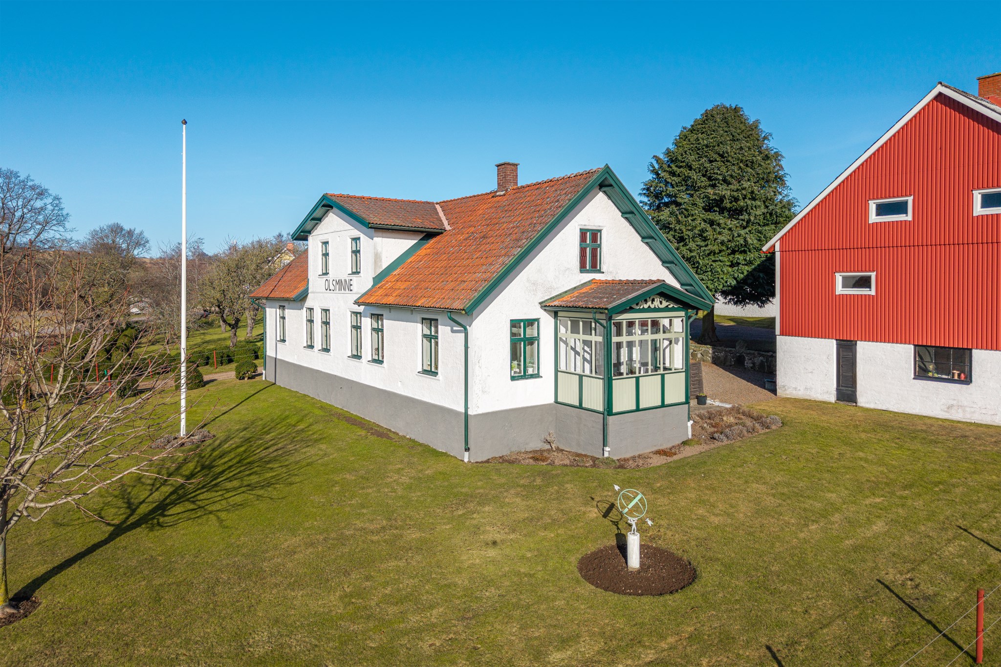 På din tur genom Grevie har du säkert lagt märke till denna ståtliga fastighet med vackert och högt läge samt ståndsmässig mangårdsbyggnad. Olsminne uppfördes 1897 av en bankman i bygden och har sedan tidigt 1900-tal varit i samma familjs ägo. Med jordbruksmark i öster och läge alldeles vid gamla banvallen i som nu är ombyggd till gång- och cykelväg i väster har man nära till kommunikation och även rekreation i magiska Sinarpsdalen. Den omsorgsfullt skötta bostadsbyggnaden i traditionell längastil som senast renoverades 1996-2001 har kalkad fasad och söt veranda på södergaveln. Entréplan erbjuder högt i tak, salonger i fil, stort lantkök, två sovrum samt badrum och praktisk groventré/tvätt. På det privata ovanplanet finns två sovrum och allrum. Möjlighet finns att inreda södra delen av vinden för den som så önskar. Välskötta stall- och logbyggnader med 2 ponnyboxar, hönshus, verkstad och generösa förrådsutrymmen. Bostaden värms med jordvärme samt har två fungerande kakelugnar samt vedspis. Söker du ett liv på landet men samtidigt nära till service är detta stället för dig. På den generösa tomten om 6.500 m² finns möjlighet att både odla, ha får och hönor. Välkommen på visning!