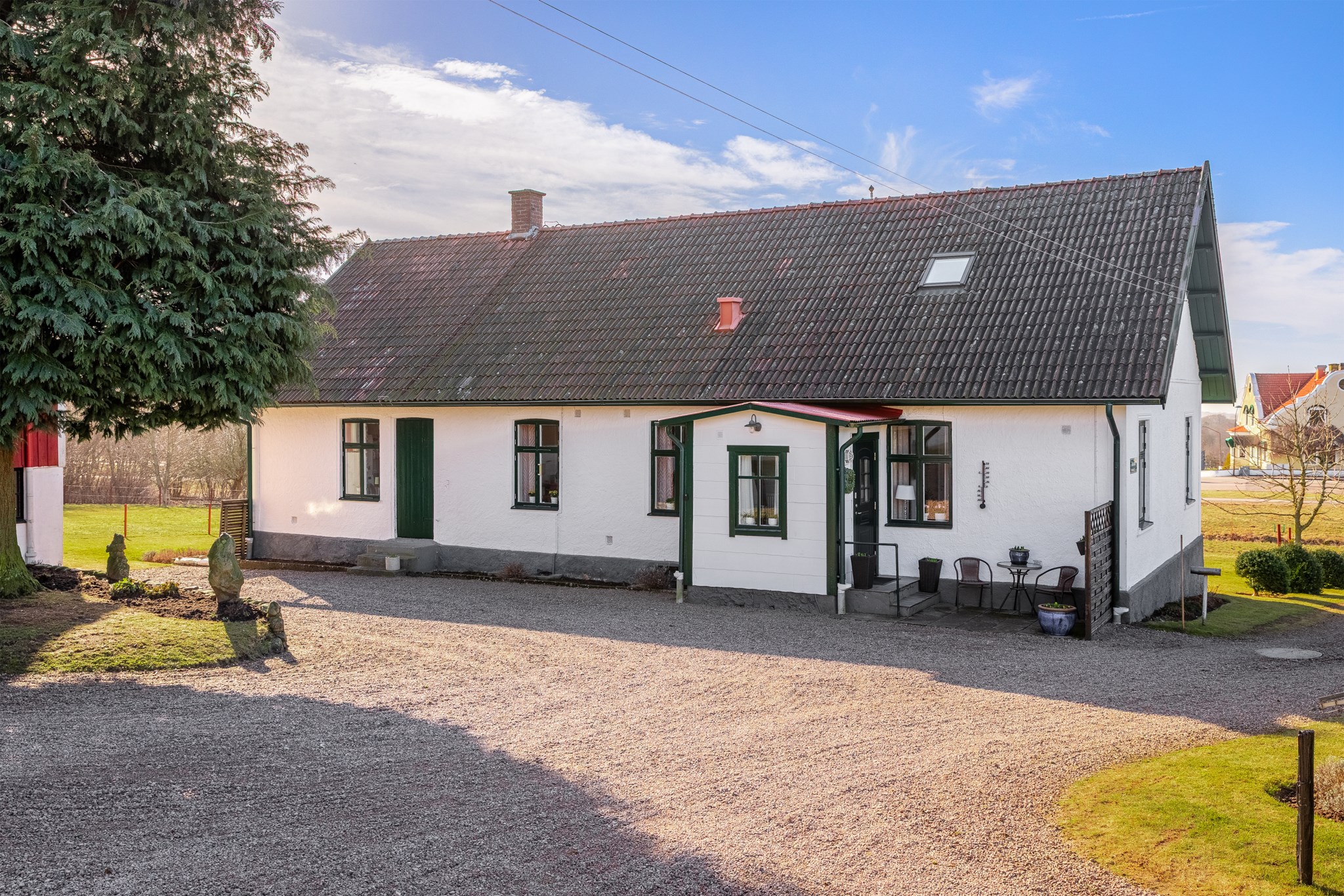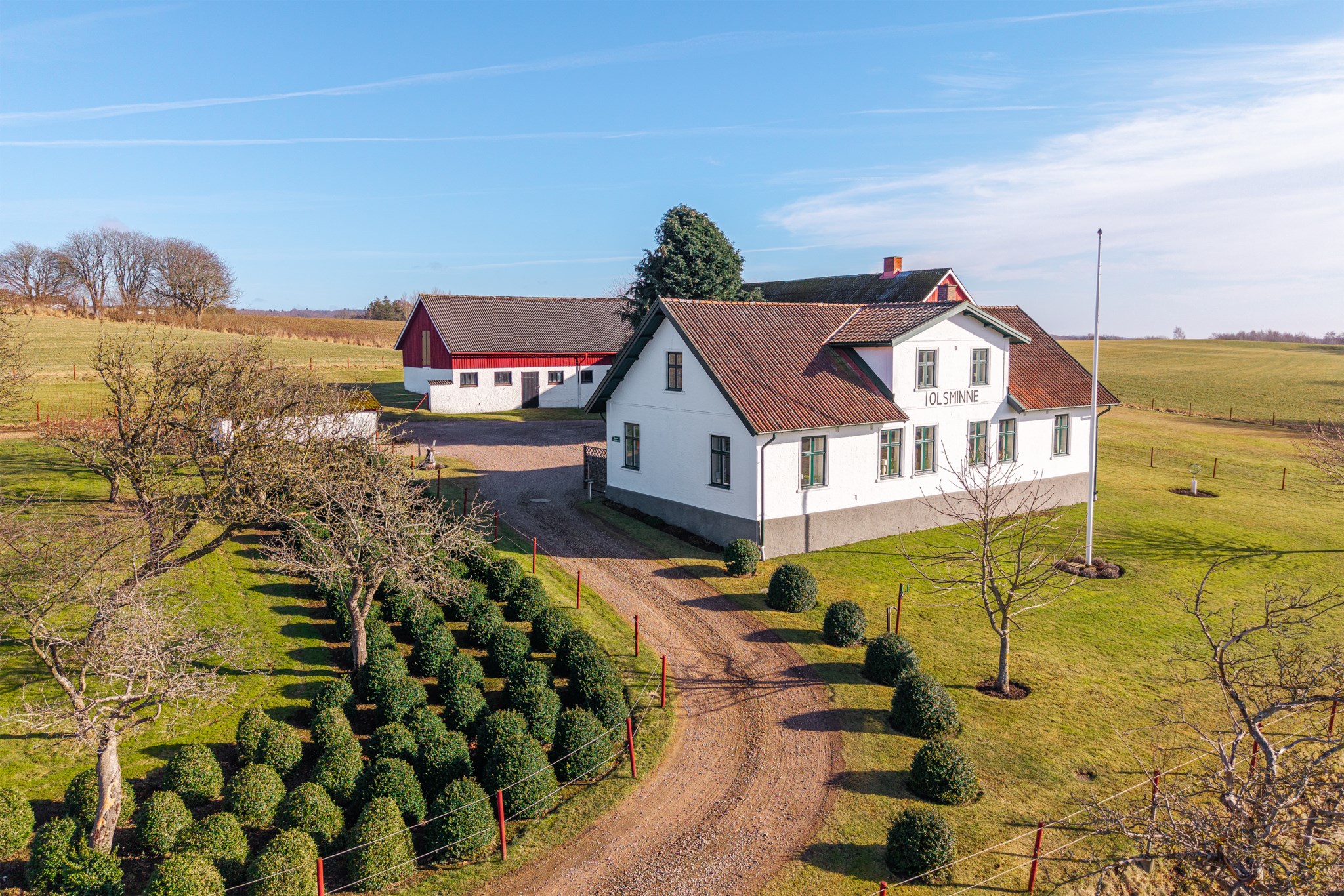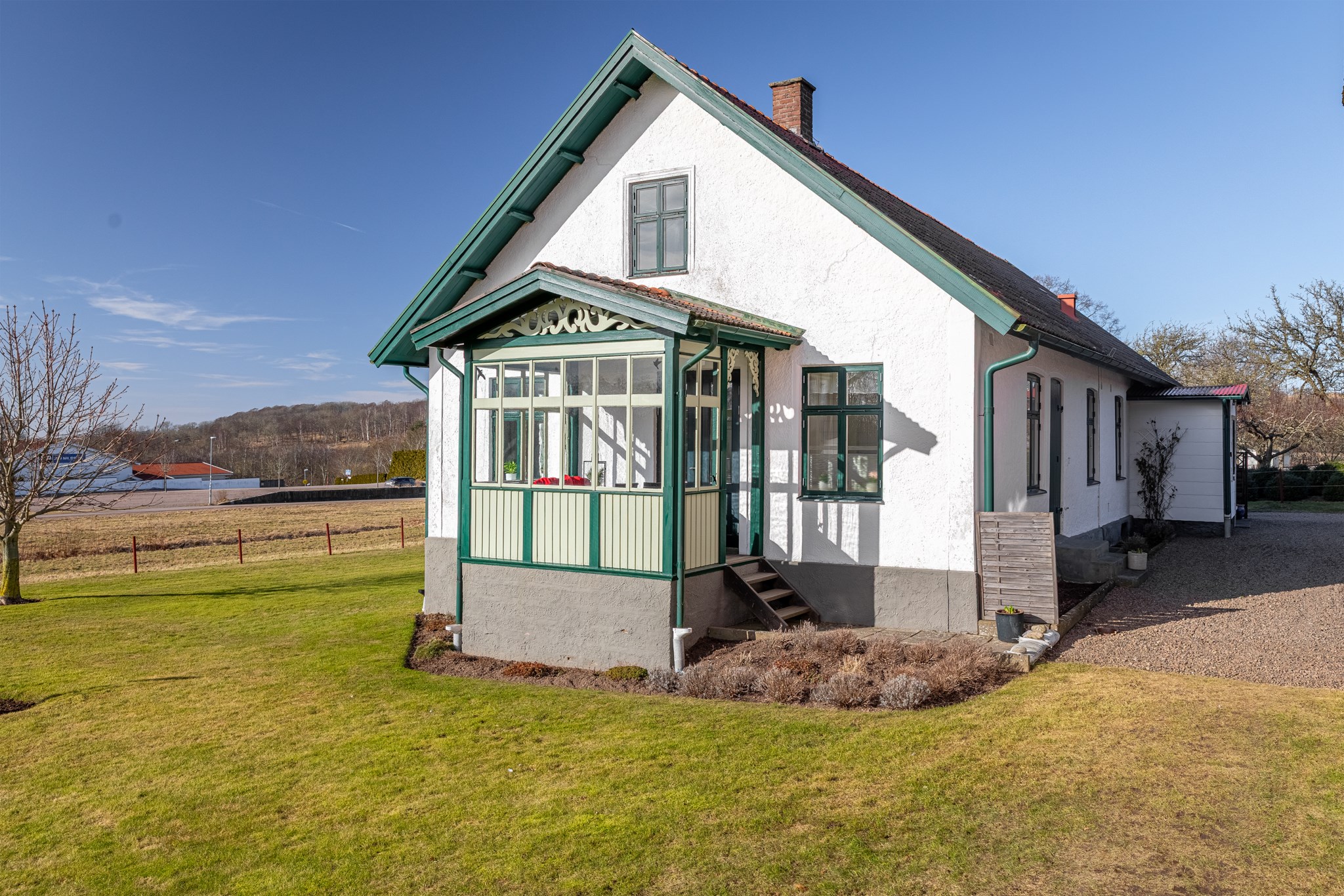 På din tur genom Grevie har du säkert lagt märke till denna ståtliga fastighet med vackert och högt läge samt ståndsmässig mangårdsbyggnad. Olsminne uppfördes 1897 av en bankman i bygden och har sedan tidigt 1900-tal varit i samma familjs ägo. Med jordbruksmark i öster och läge alldeles vid gamla banvallen i som nu är ombyggd till gång- och cykelväg i väster har man nära till kommunikation och även rekreation i magiska Sinarpsdalen. Den omsorgsfullt skötta bostadsbyggnaden i traditionell längastil som senast renoverades 1996-2001 har kalkad fasad och söt veranda på södergaveln. Entréplan erbjuder högt i tak, salonger i fil, stort lantkök, två sovrum samt badrum och praktisk groventré/tvätt. På det privata ovanplanet finns två sovrum och allrum. Möjlighet finns att inreda södra delen av vinden för den som så önskar. Välskötta stall- och logbyggnader med 2 ponnyboxar, hönshus, verkstad och generösa förrådsutrymmen. Bostaden värms med jordvärme samt har två fungerande kakelugnar samt vedspis. Söker du ett liv på landet men samtidigt nära till service är detta stället för dig. På den generösa tomten om 6.500 m² finns möjlighet att både odla, ha får och hönor. Välkommen på visning!