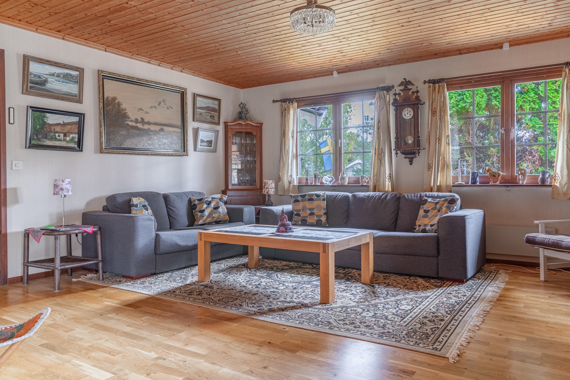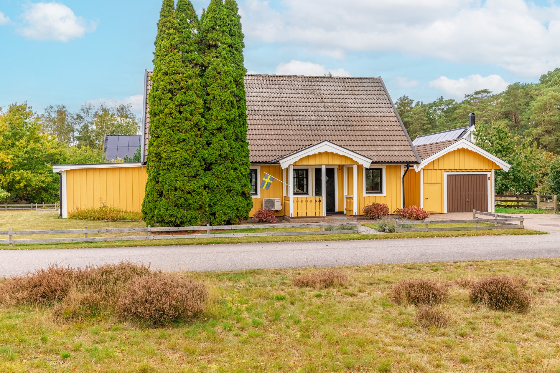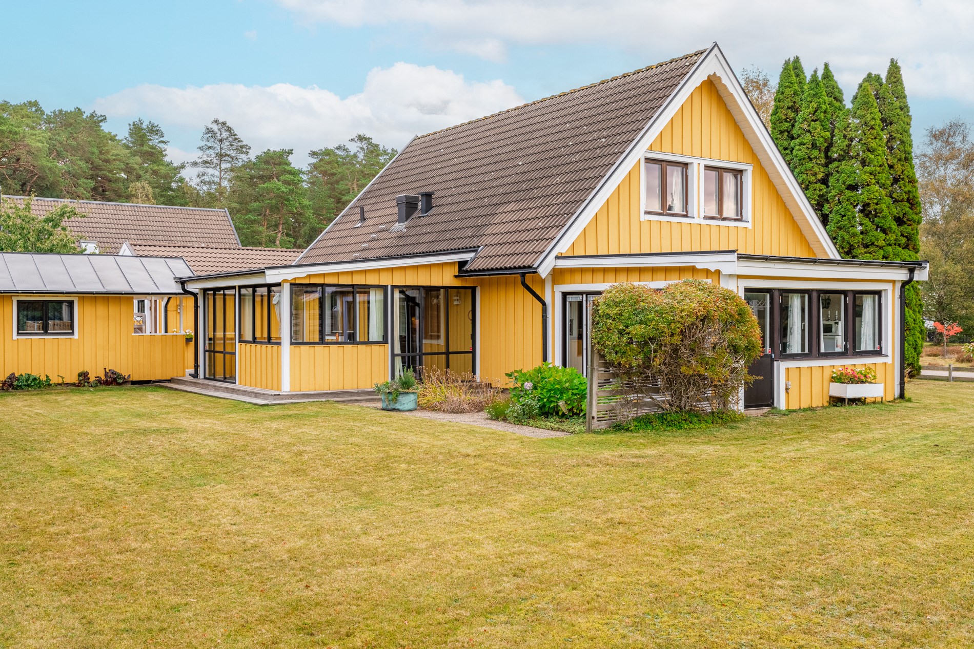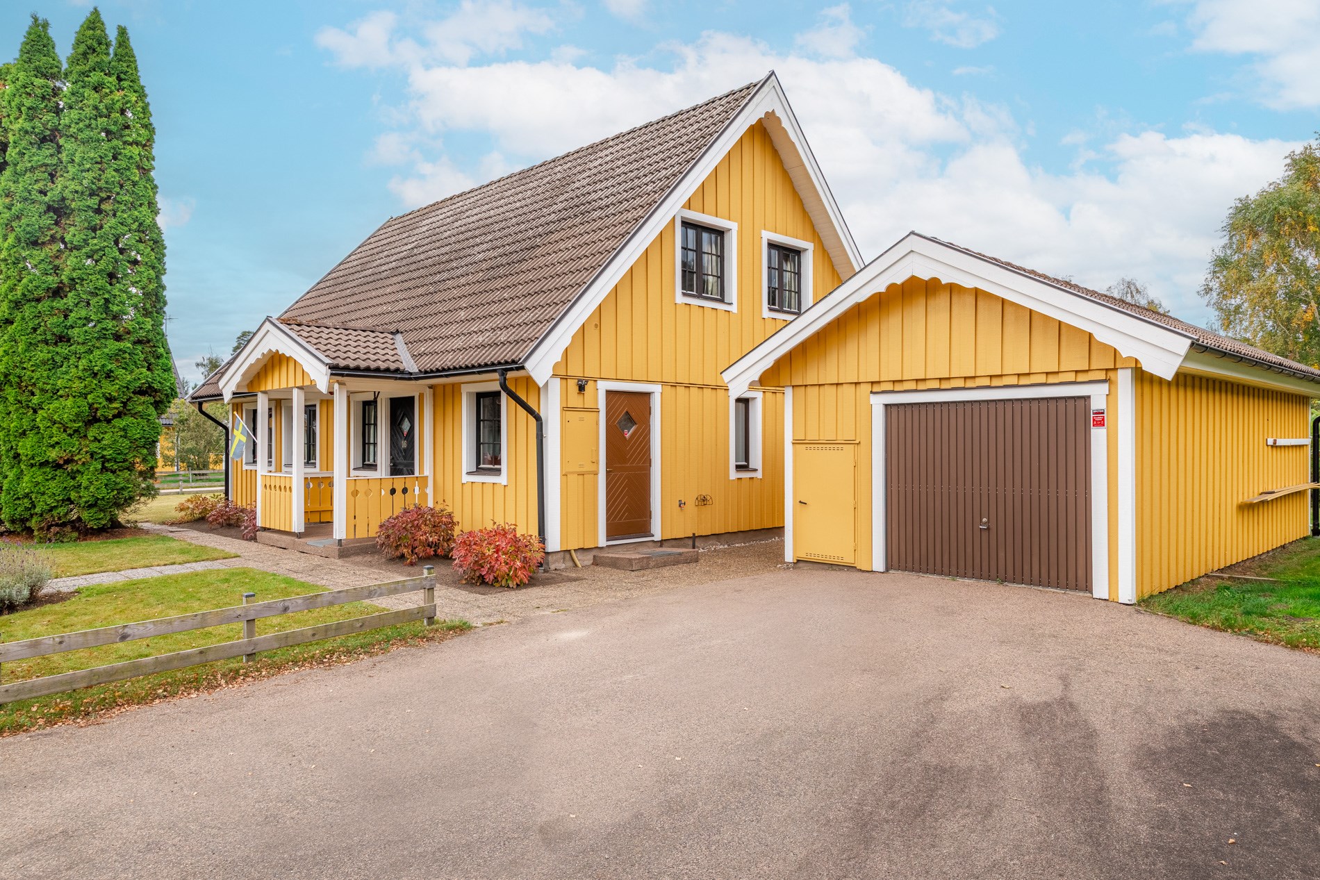 Byggnadstyp1 ½ planByggnadsår1981FasadTräStommeTräFönster2-glasfönsterBjälklagTräTakBetongpannorGrundPlatta på markUppvärmningLuft-luftvärmepump + direktverkande el + golvvärme matrumVatten/avloppKommunalt vatten, Kommunalt avlopp.TomtenStor hörntomt med i huvudsak gräsytor och gott om plats för lek.UteplatsInsynsskyddad och privat uteplats som ramas in av uterum och gästhus. Tomten erbjuder flera uteplatser och ger möjlighet att följa solens gång under dagen.BilplatsParkeringsplatser finns på asfalterad infart samt plats i garage.RenoveringFasad målat 2021