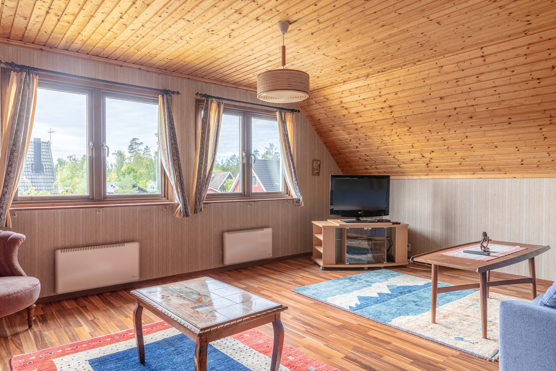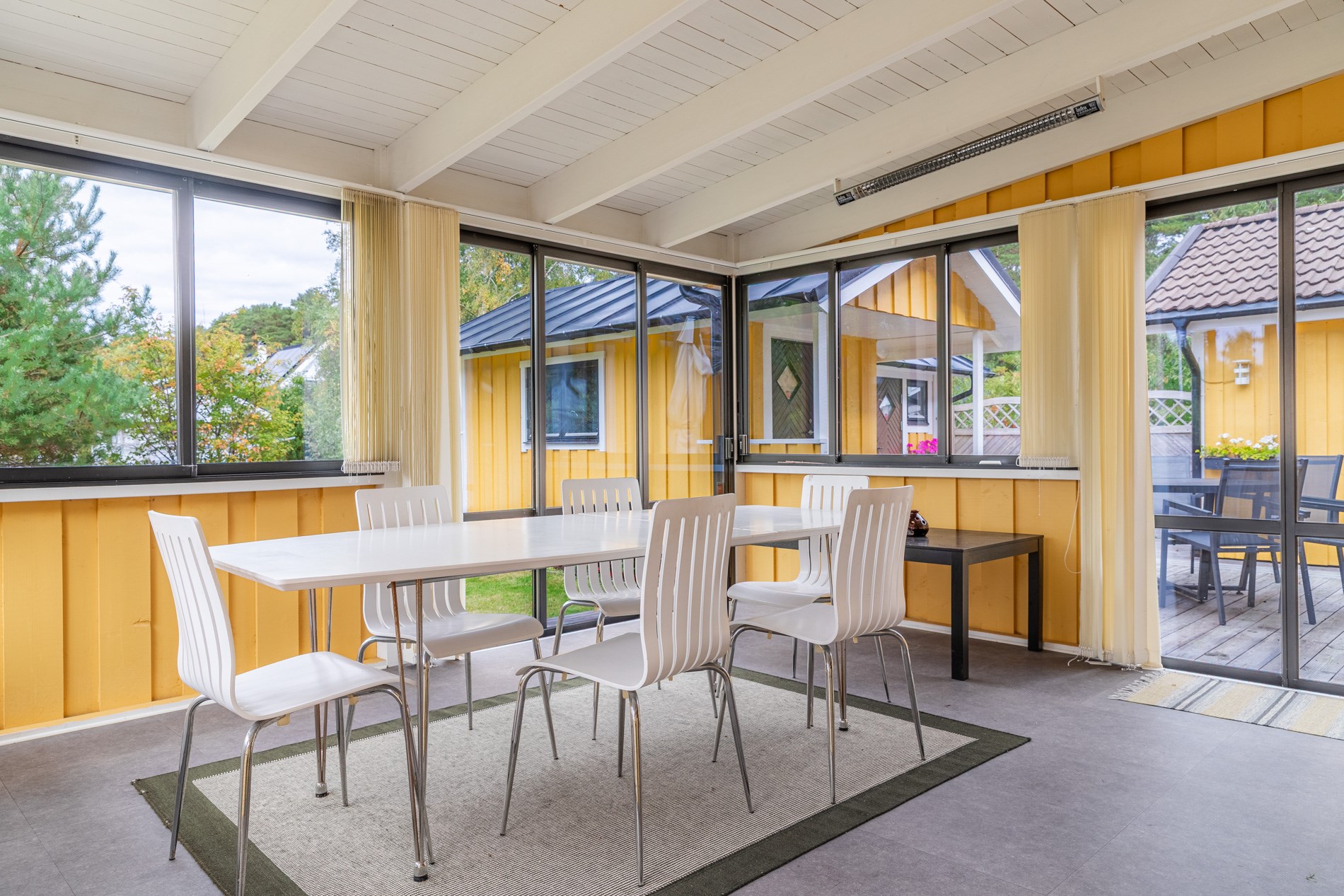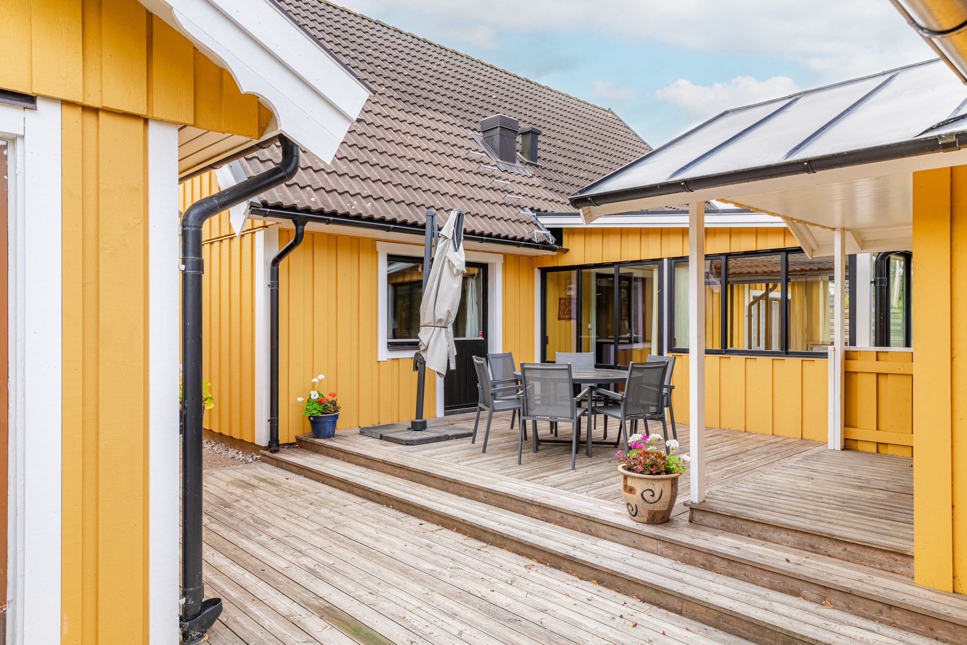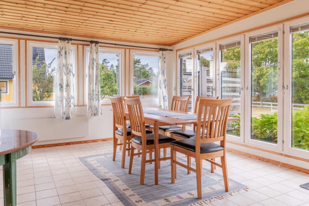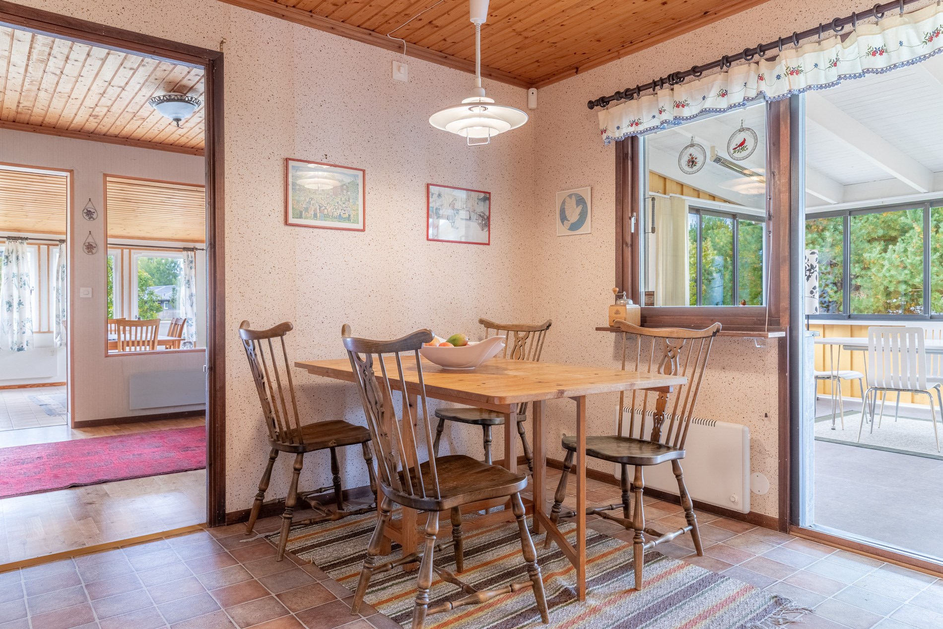 Byggnadstyp1 ½ planByggnadsår1981FasadTräStommeTräFönster2-glasfönsterBjälklagTräTakBetongpannorGrundPlatta på markUppvärmningLuft-luftvärmepump + direktverkande el + golvvärme matrumVatten/avloppKommunalt vatten, Kommunalt avlopp.TomtenStor hörntomt med i huvudsak gräsytor och gott om plats för lek.UteplatsInsynsskyddad och privat uteplats som ramas in av uterum och gästhus. Tomten erbjuder flera uteplatser och ger möjlighet att följa solens gång under dagen.BilplatsParkeringsplatser finns på asfalterad infart samt plats i garage.RenoveringFasad målat 2021