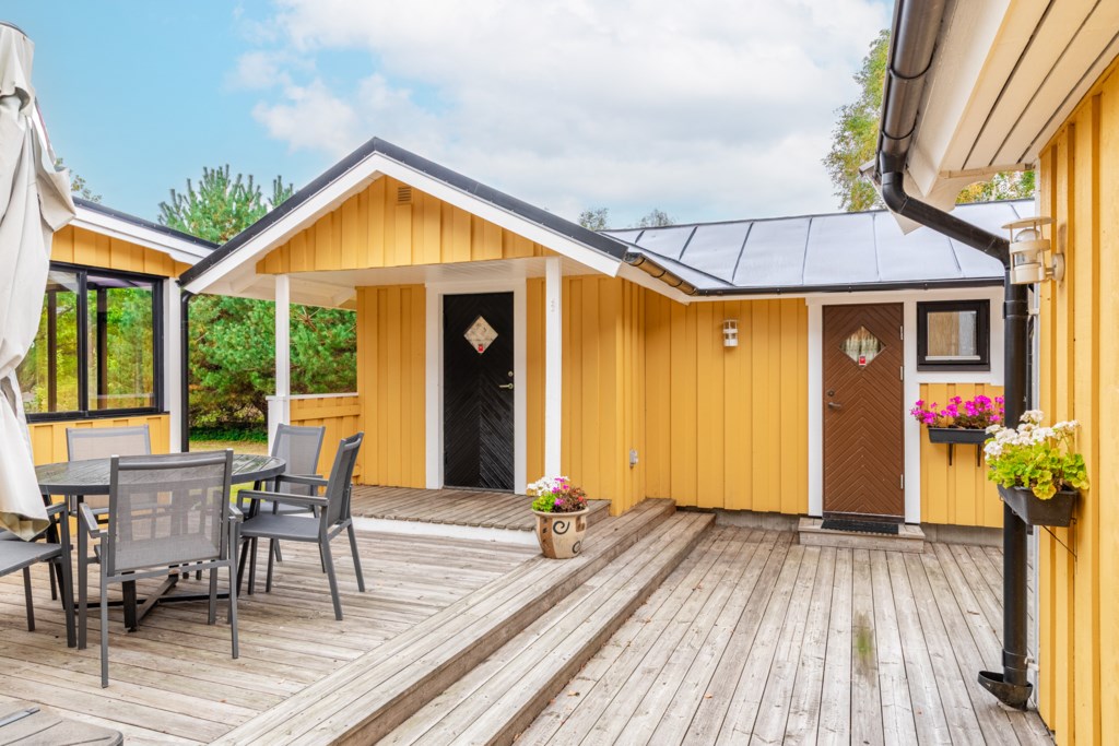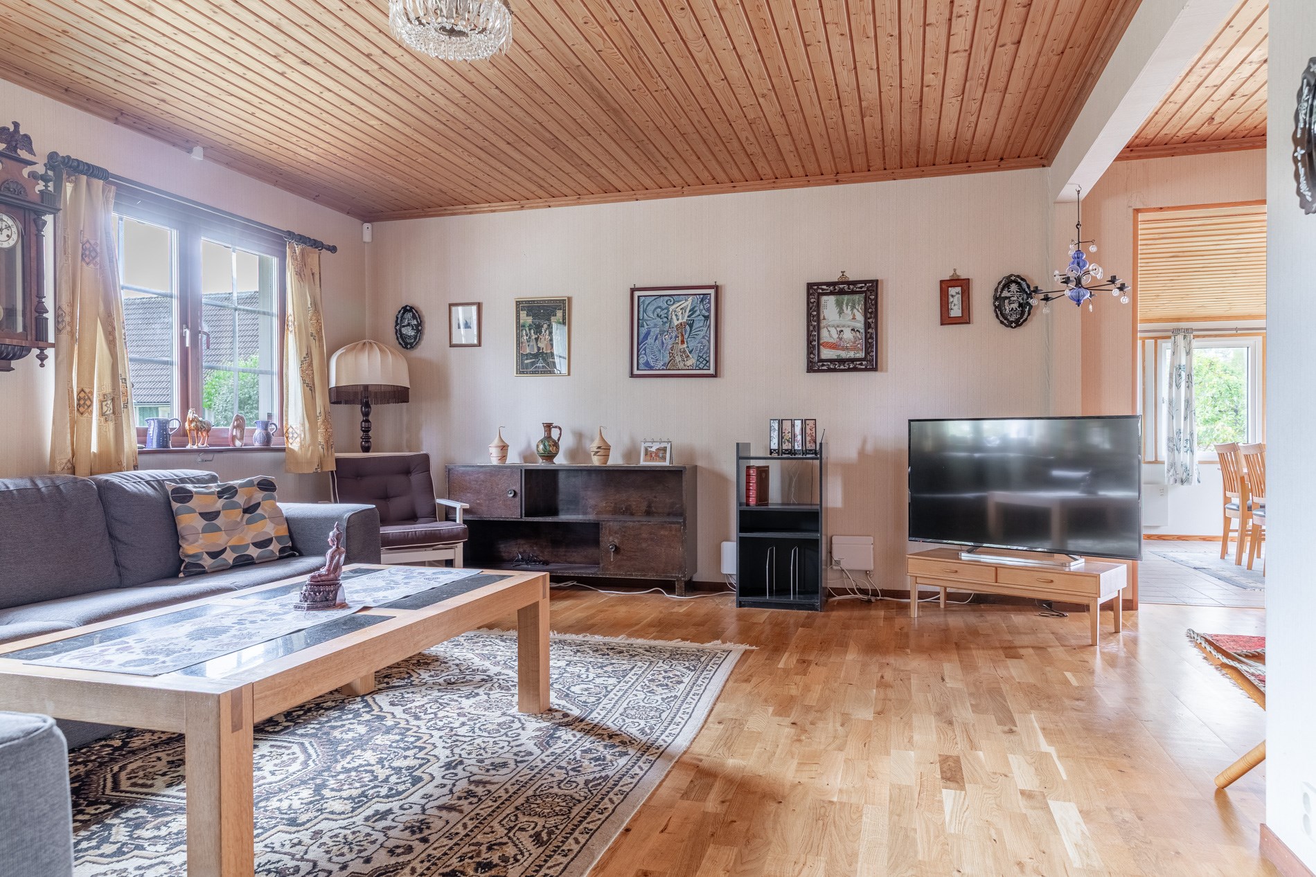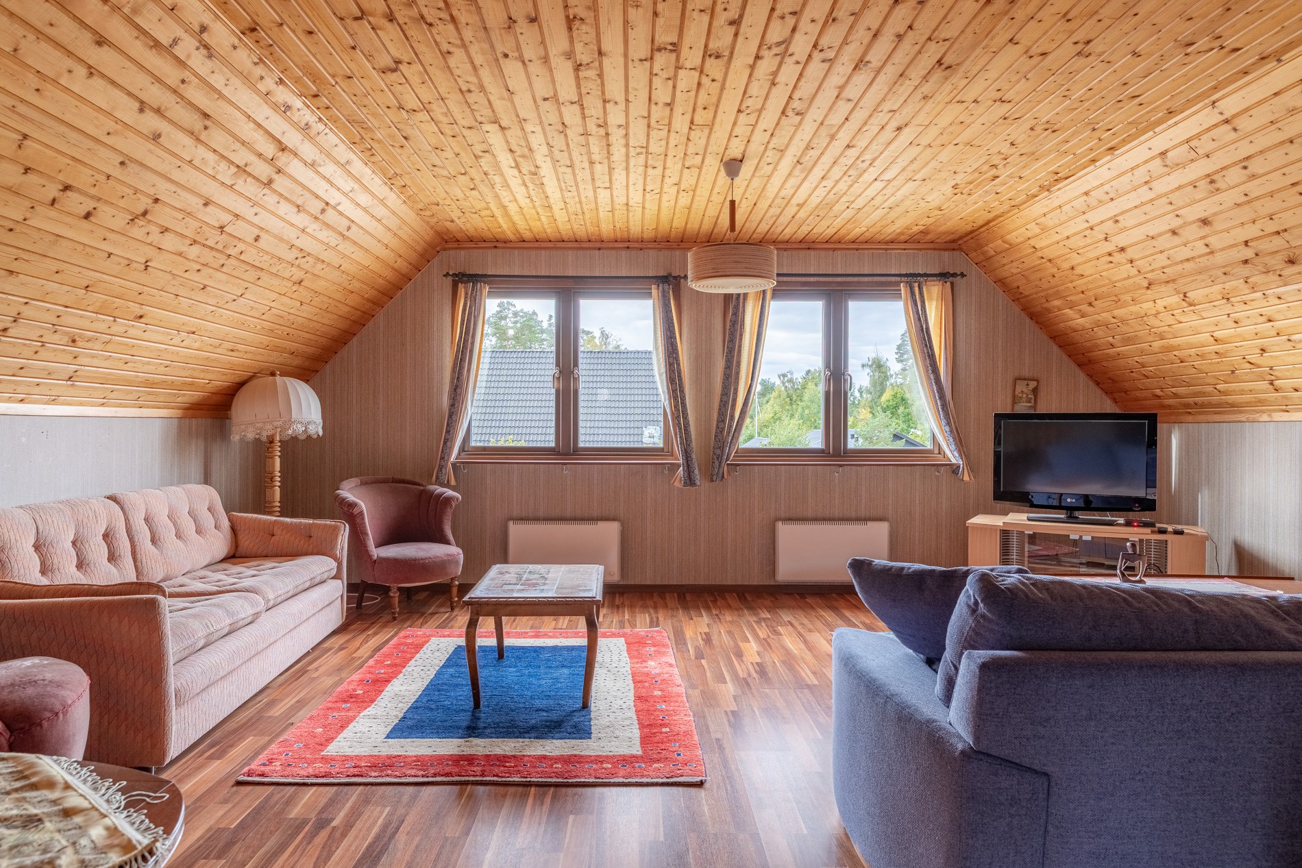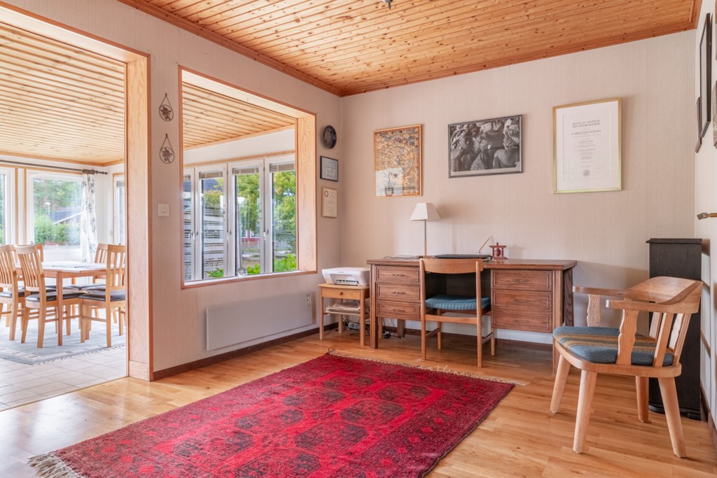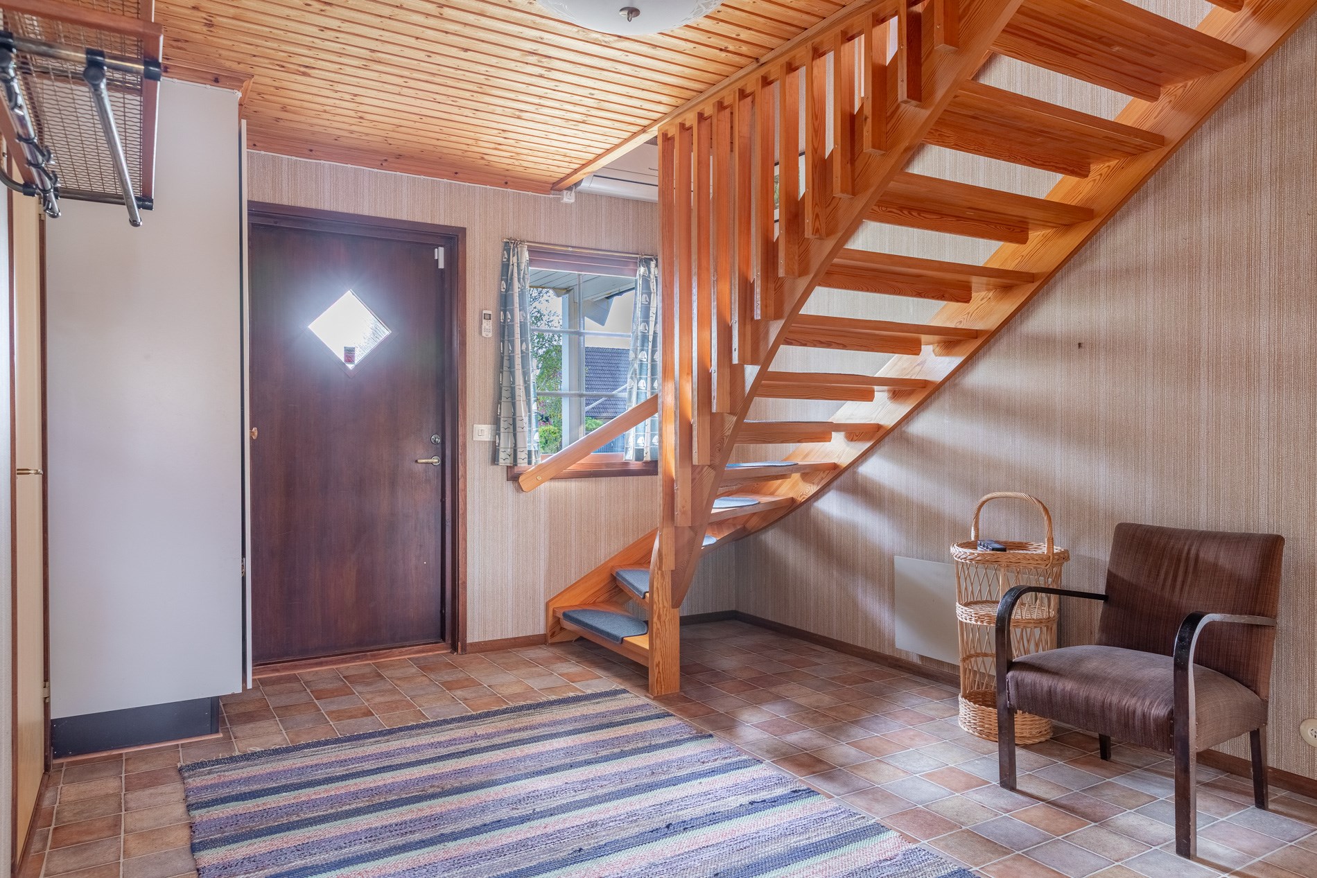 Byggnadstyp1 ½ planByggnadsår1981FasadTräStommeTräFönster2-glasfönsterBjälklagTräTakBetongpannorGrundPlatta på markUppvärmningLuft-luftvärmepump + direktverkande el + golvvärme matrumVatten/avloppKommunalt vatten, Kommunalt avlopp.TomtenStor hörntomt med i huvudsak gräsytor och gott om plats för lek.UteplatsInsynsskyddad och privat uteplats som ramas in av uterum och gästhus. Tomten erbjuder flera uteplatser och ger möjlighet att följa solens gång under dagen.BilplatsParkeringsplatser finns på asfalterad infart samt plats i garage.RenoveringFasad målat 2021