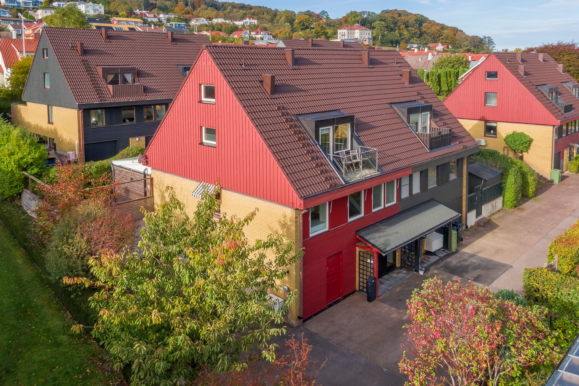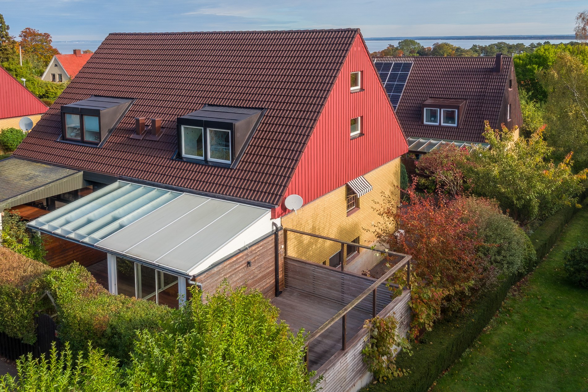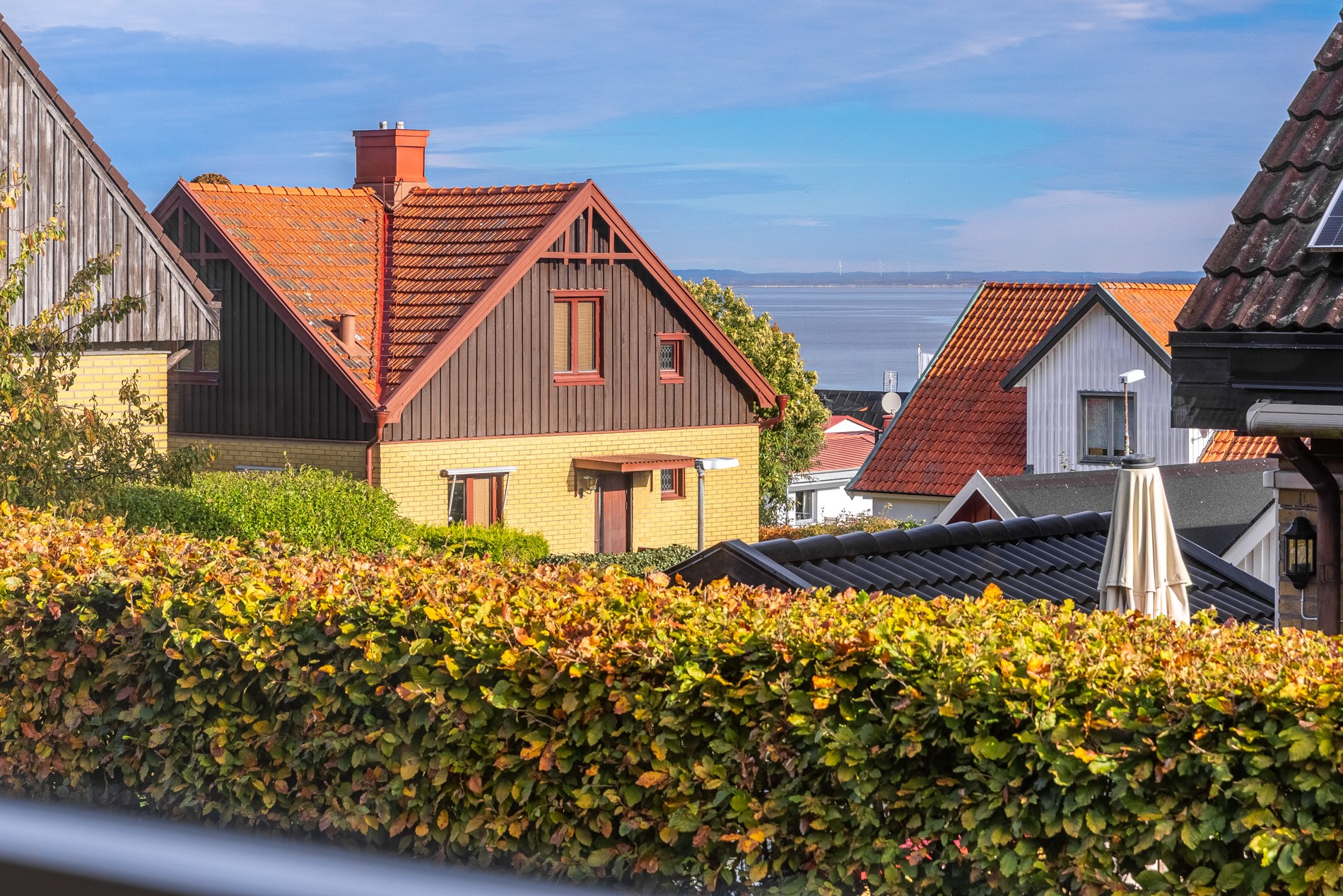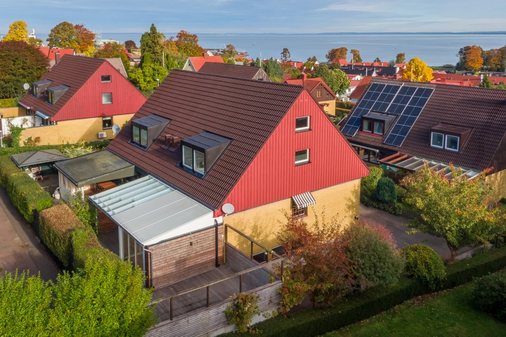 Byggnadstyp1½ plan med souterrängvåningByggnadsår1975FasadTegel och träpanelStommeTegel och träFönster3-glasfönster isolerBjälklagTräTakBetongpannorGrundBetongplattaUppvärmningLuft/luftvärmepump och direktverkande elVatten/avloppKommunalt vatten, Kommunalt avlopp.TomtenLättskött tomt då den till största del består av trädäck som är omringad av häck.UteplatsBalkong i öst med morgonsol och utsikt över hav och ås. Uterum med utgång till delvis överbyggd altan samt trädäck i soligt söderläge på gavelsidan. Uteplatser omringade av häck som gör platsen privat och insynsskyddad.BilplatsUppställningsplatser finns på gaveln av huset och kompletteras med laddstation till elbil.RenoveringKontroll av dränering och urgrävning av gavel -13