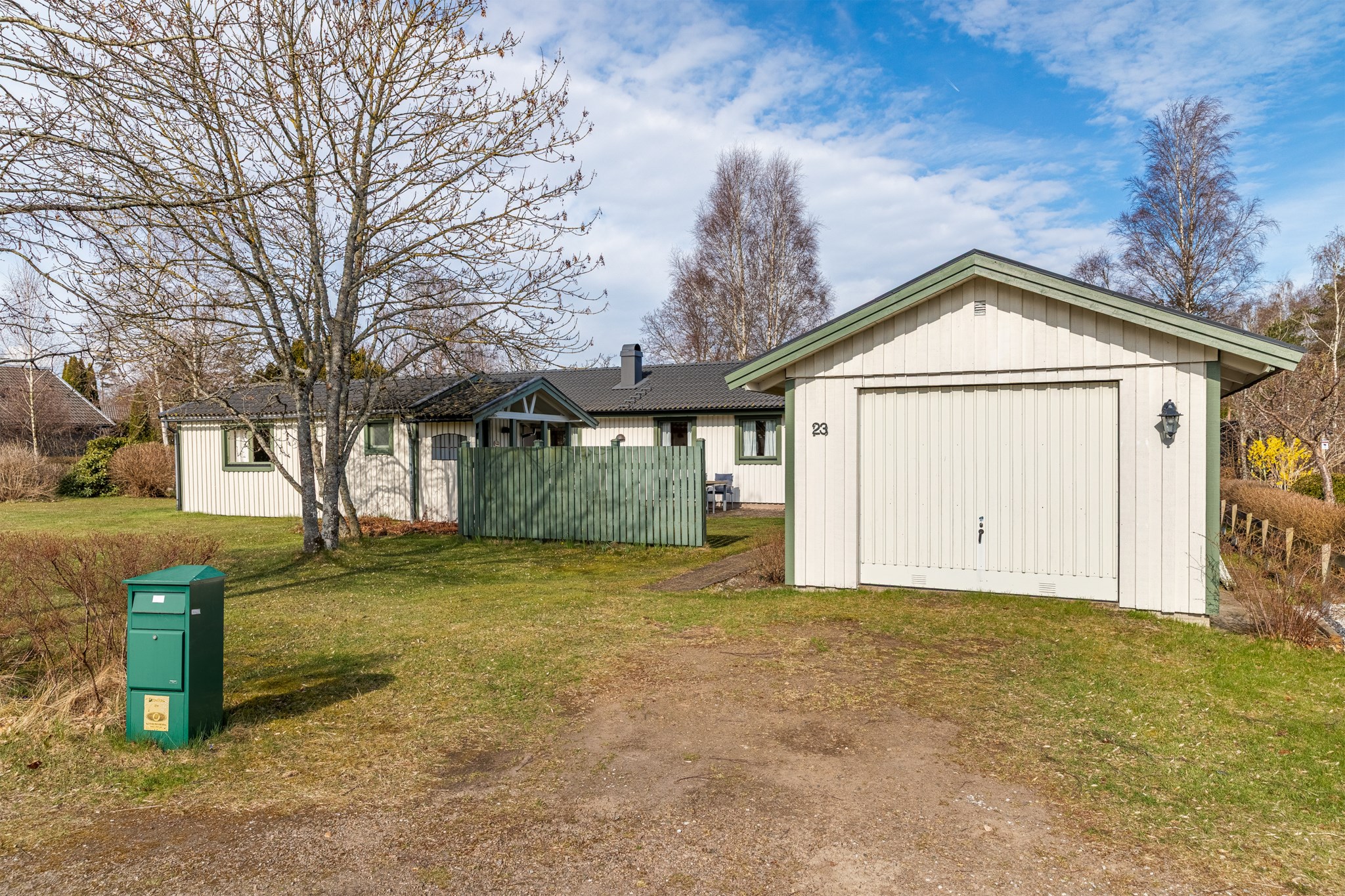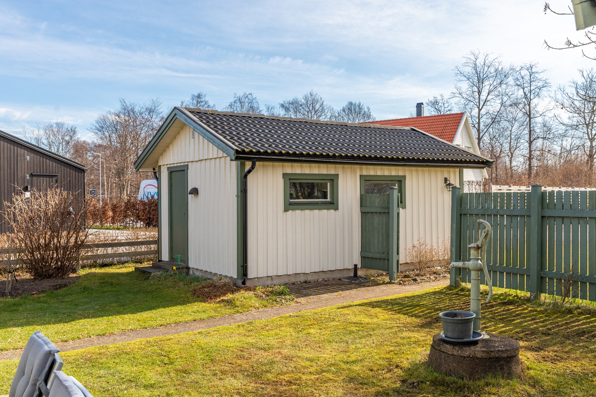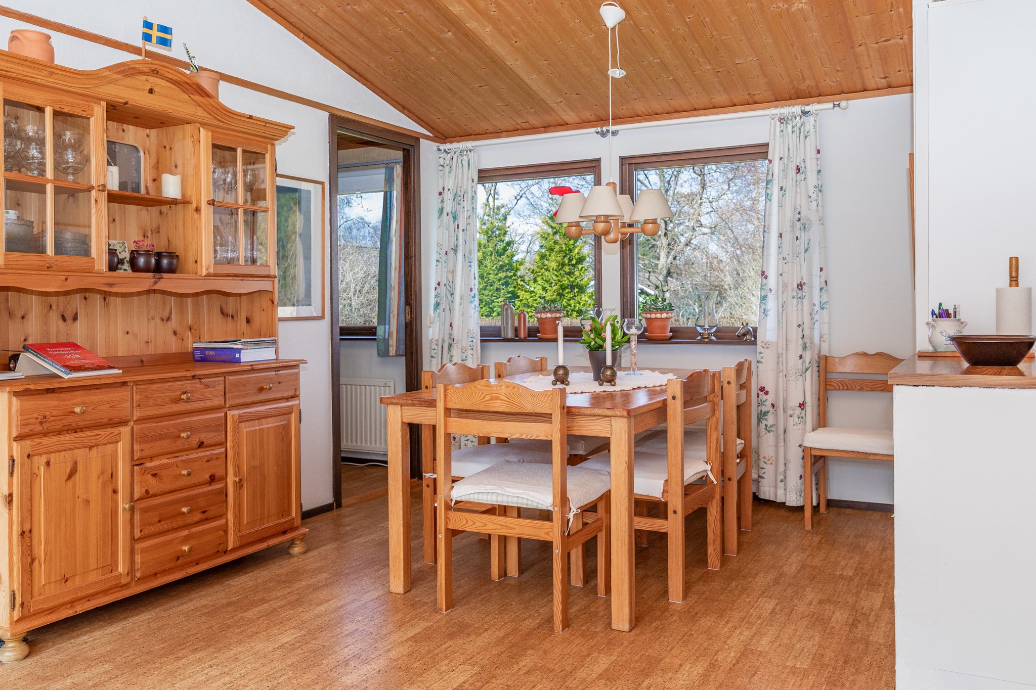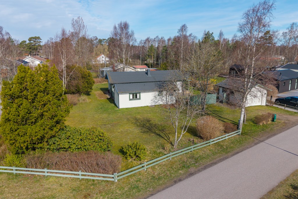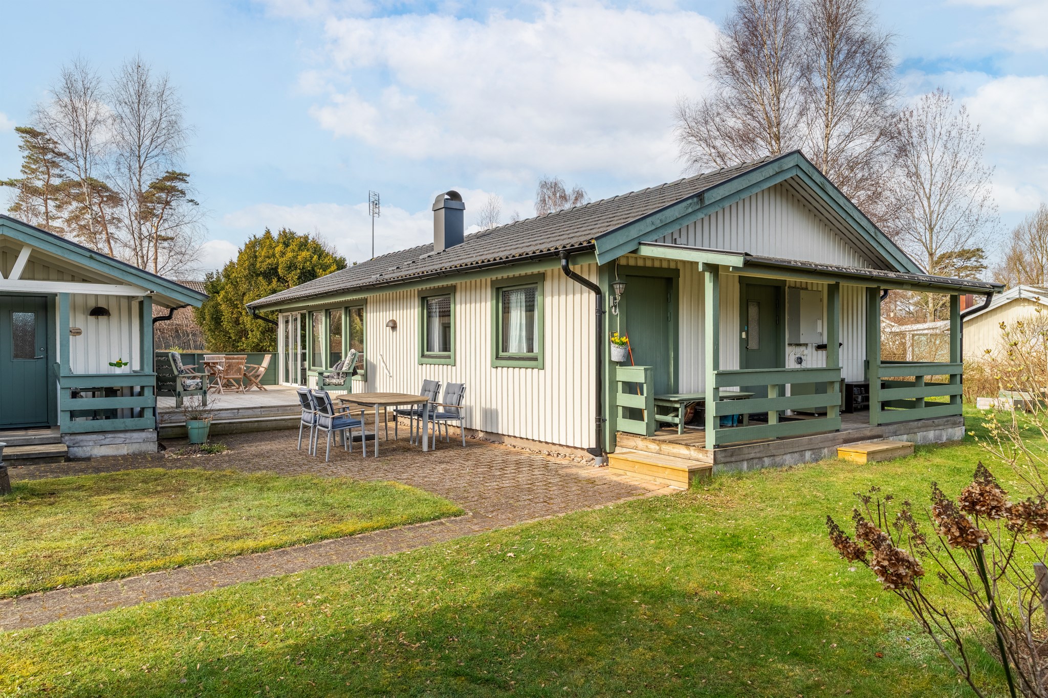 Byggnadstyp1-planByggnadsår1980FasadTräpanelStommeTräFönsterKoppladeBjälklagTräTakBetongpannorGrundKrypgrundUppvärmningLuft/luftvärmepump, kamin + oljefyllda elradiatorer i både storstuga och gästhusVatten/avloppKommunalt vatten året om. Kommunalt avlopp. Egen brunn finns för bevattning, pump saknas.TomtenLjuvlig hörntomt med stora gräsytor, björkar och rhododendron. Den stora tomten ger oändligt med möjligheter.UteplatsSolbadande altan, vackert placerad mellan boningshus och gästhus.BilplatsPlats för en bil i garage samt plats för flertalet bilar på tomt.RenoveringTak tvättat ca 2020Övriga utrymmenGullig gäststuga byggd mitten på 50-talet, med pentry kök, wc/dusch och sovrum. Garage byggt ca 1990, med förråd. Vedbod/cykelförråd finns.TV- och internetanslutning