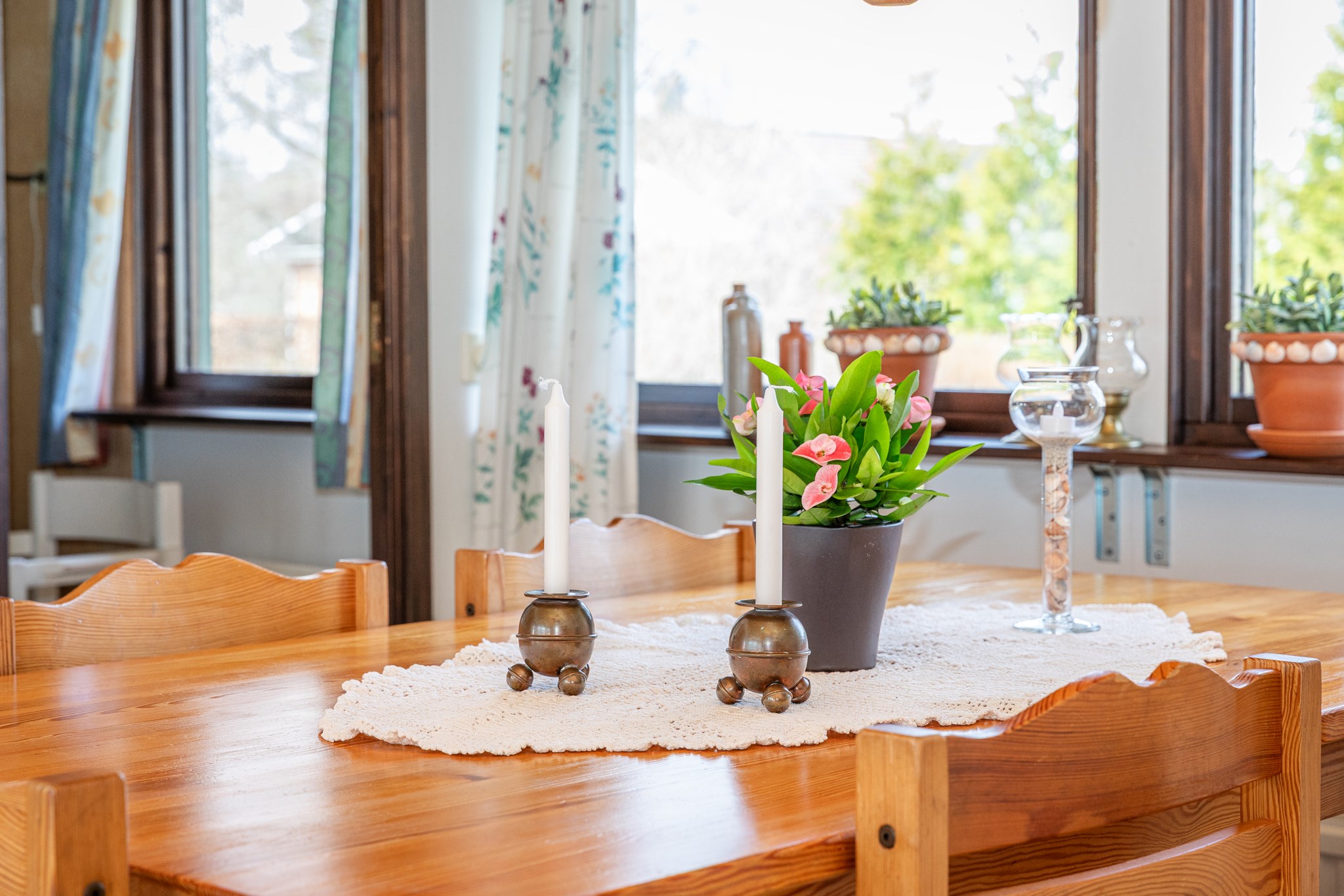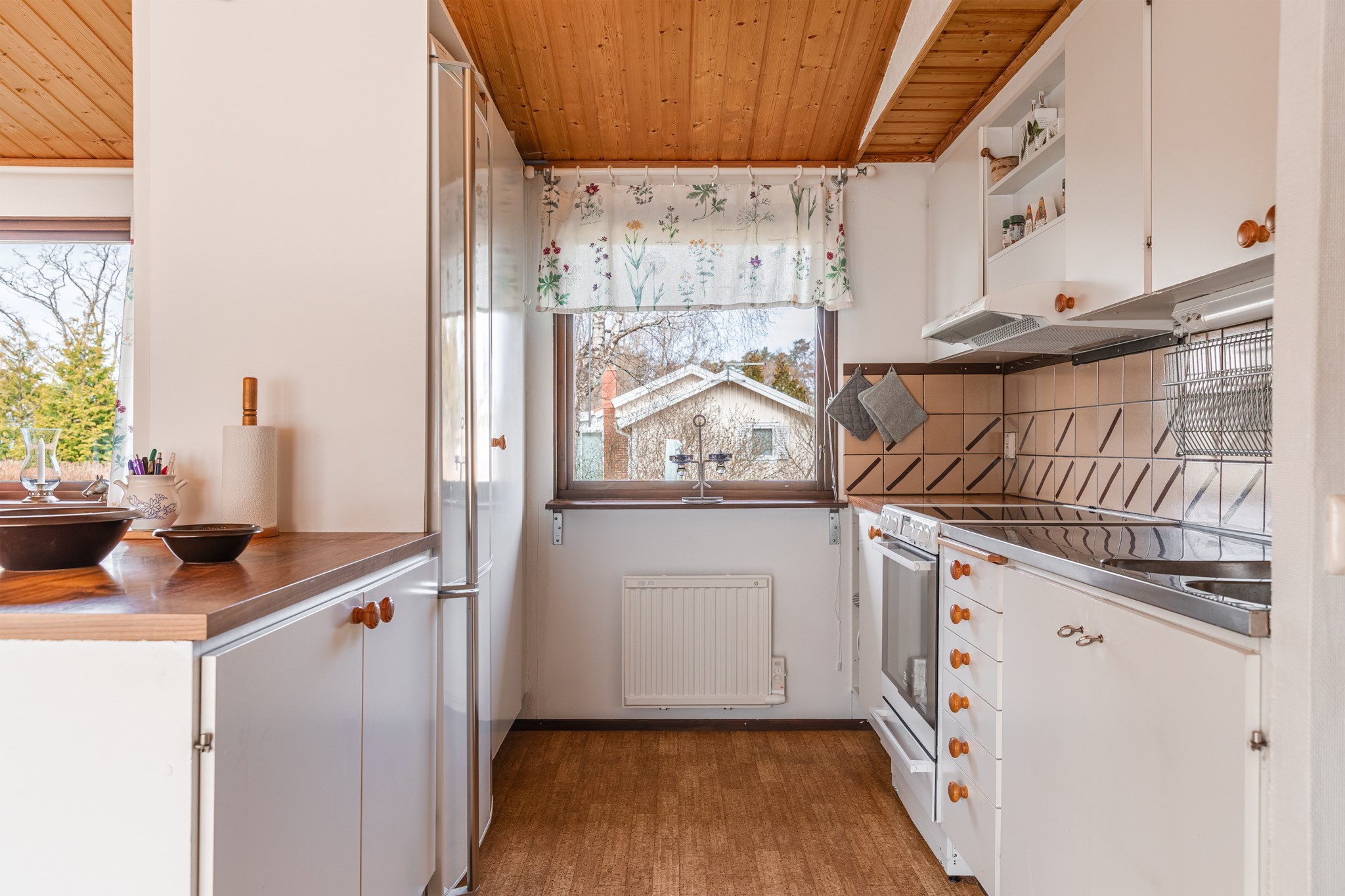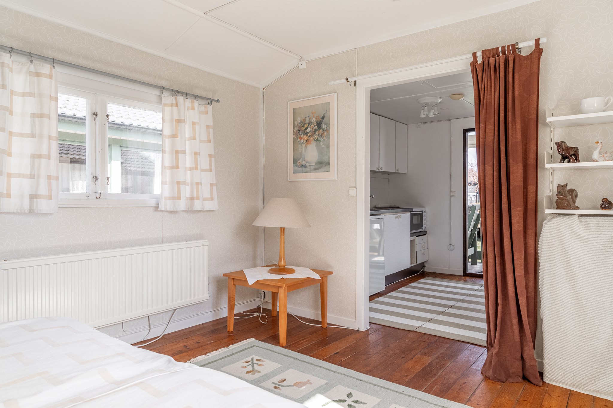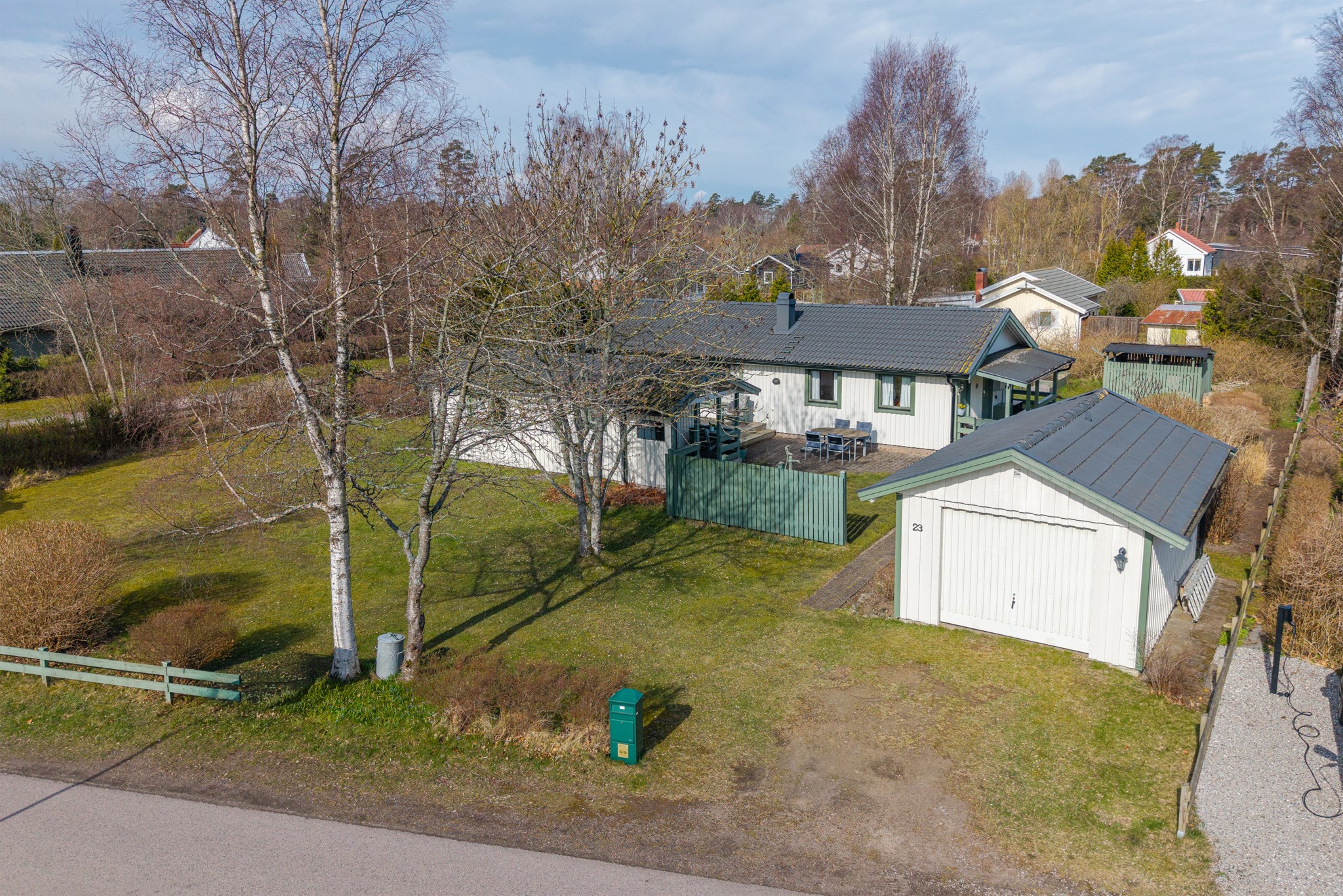 Byggnadstyp1-planByggnadsår1980FasadTräpanelStommeTräFönsterKoppladeBjälklagTräTakBetongpannorGrundKrypgrundUppvärmningLuft/luftvärmepump, kamin + oljefyllda elradiatorer i både storstuga och gästhusVatten/avloppKommunalt vatten året om. Kommunalt avlopp. Egen brunn finns för bevattning, pump saknas.TomtenLjuvlig hörntomt med stora gräsytor, björkar och rhododendron. Den stora tomten ger oändligt med möjligheter.UteplatsSolbadande altan, vackert placerad mellan boningshus och gästhus.BilplatsPlats för en bil i garage samt plats för flertalet bilar på tomt.RenoveringTak tvättat ca 2020Övriga utrymmenGullig gäststuga byggd mitten på 50-talet, med pentry kök, wc/dusch och sovrum. Garage byggt ca 1990, med förråd. Vedbod/cykelförråd finns.TV- och internetanslutning