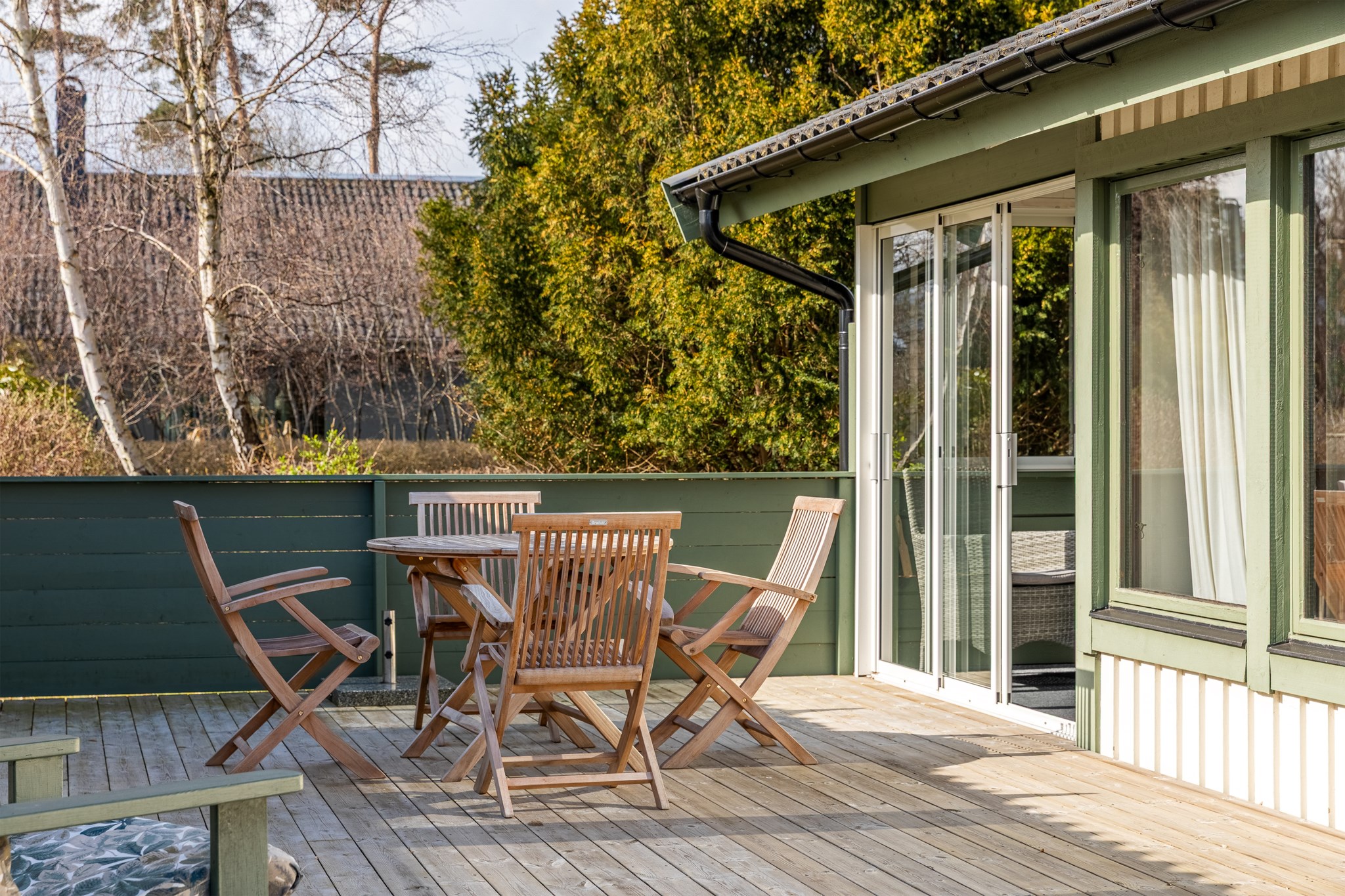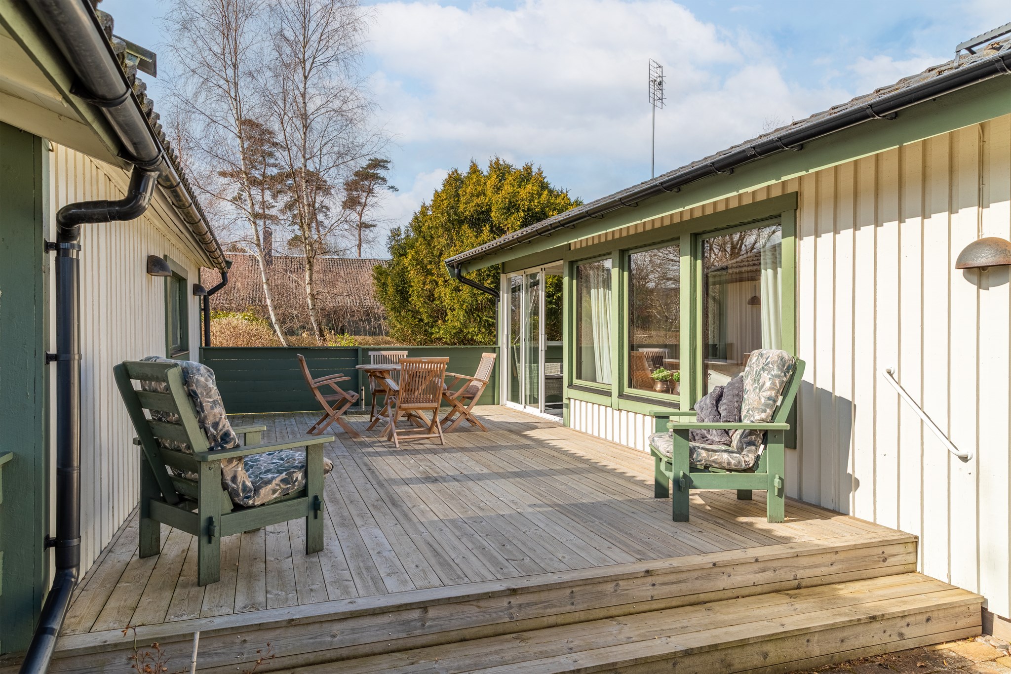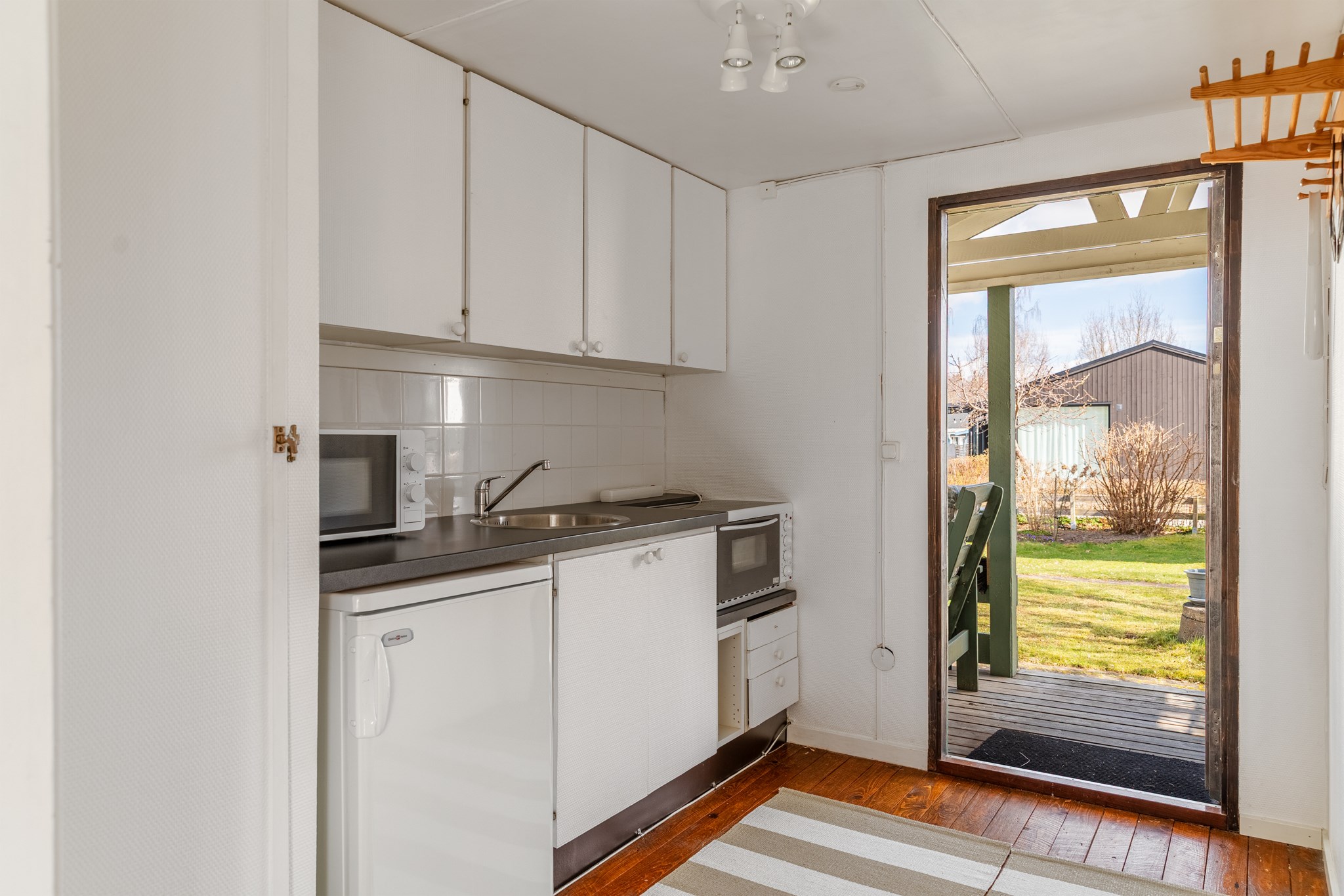 Här på lugn hörntomt, bara några minuter från havet, infinner sig den där speciella känslan av lugn. Morgonkaffet hittar sin plats i solen och framåt kvällen flyttar livet vidare in i uterummet. Bostadens hjärta är vardagsrummet som blir en självklar samlingspunkt med kamin, samtidigt som det fina ryggåstaket med träpanel tillför rummet en härlig känsla av rymd. Här finns tre sovrum, arbetsrum och badrum med tvättmöjlighet. På tomten finns fristående gästhus med pentry, badrum och sovdel – vilket gör det enkelt att ta emot gäster. En välkomnande bostad med eftertraktat strandnära läge – perfekt för sommarens lediga dagar.