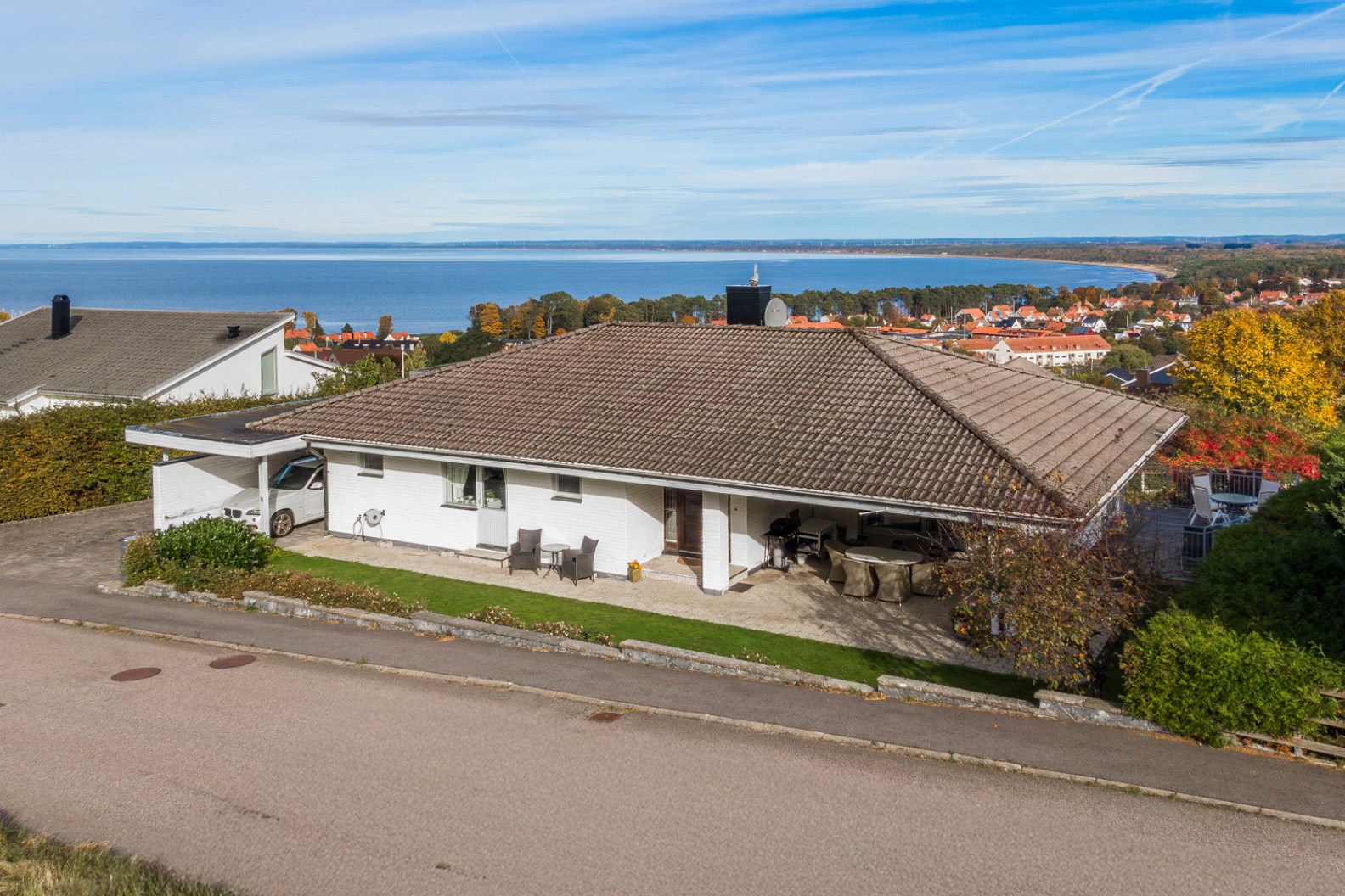 Med ett av Båstads mest eftertraktade toppläge säljs nu denna generösa och gedigna sluttningsvilla med vidunderlig utsikt över byn, havet, åsen och långt in över halländska slätten. Bo i bekväm och rymlig bostad, ritad av Stellan Paulie och uppförd av PEAB, med vackert ljus, öppen planlösning och skönt flöde mellan rummen samt förnämlig access till trädgård, balkong och uteplatser i alla väderstreck. De stora, ljusa sällskapsytorna, både uppe och nere, har centralt placerade eldstäder som skapar stämning året om. Vidare i bostaden finns matrum, kök och totalt 4 sovrum där master har badrum en suite. Avundsvärda utrymmen i souterrängplan såsom dusch/bastu/relax, förråd, tvättstuga samt mat-/vinkällare. Ute möts du av terrasserad och uppvuxen trädgård med gräsyta som är perfekt för dig med pooldrömmar. Carport och stensatt infart med plats för flera bilar kompletterar. Läget kombinerar lugn och avskildhet med närhet till byns utbud av strand, hamn, restauranger samt affärer, skola och service. Välkommen till detta boende som lämpar sig lika bra för åretruntliv som för den som söker ett storstilat sommarresidens.