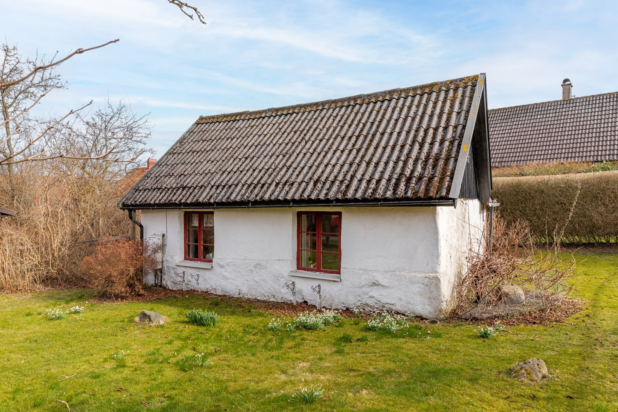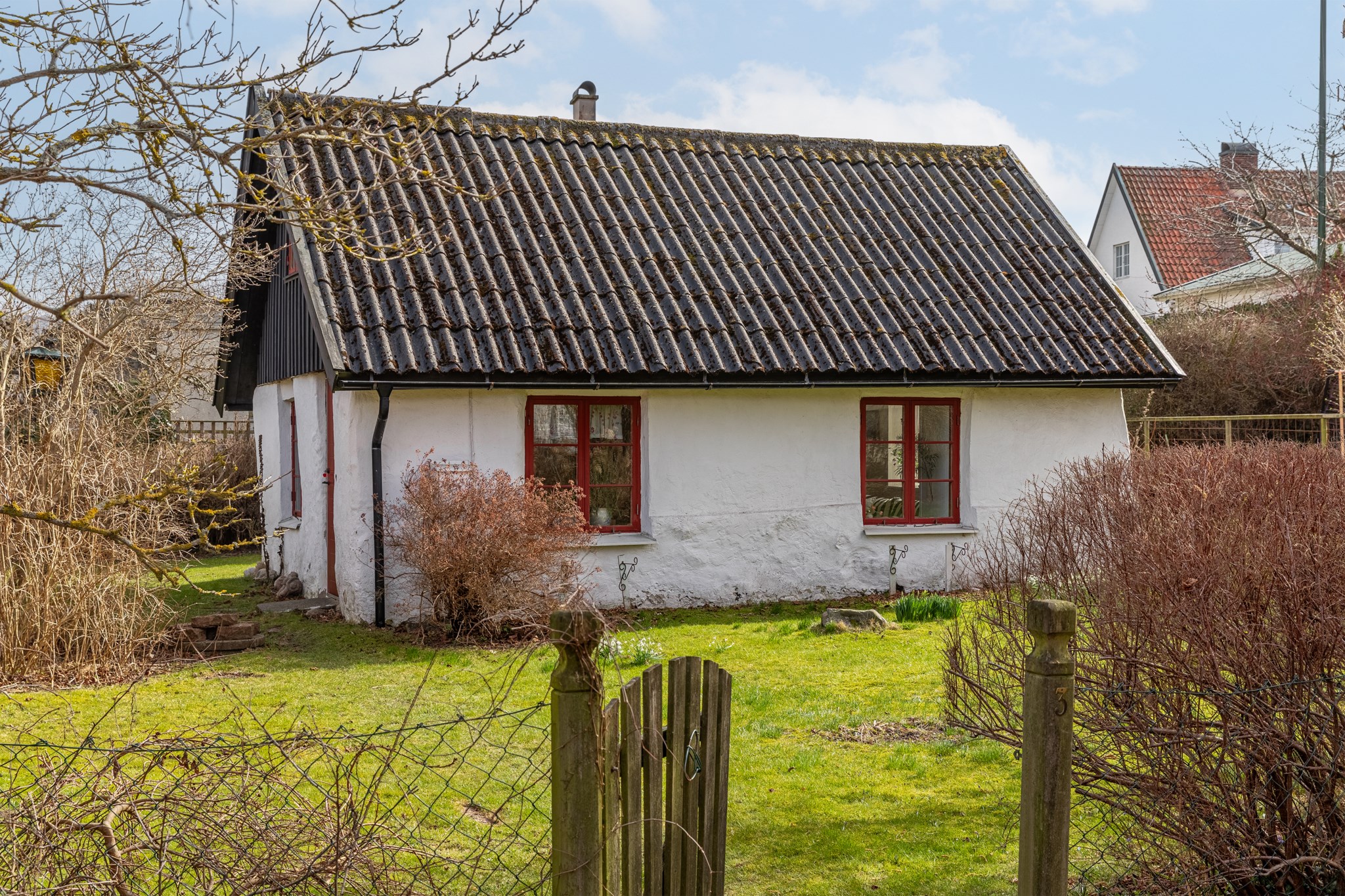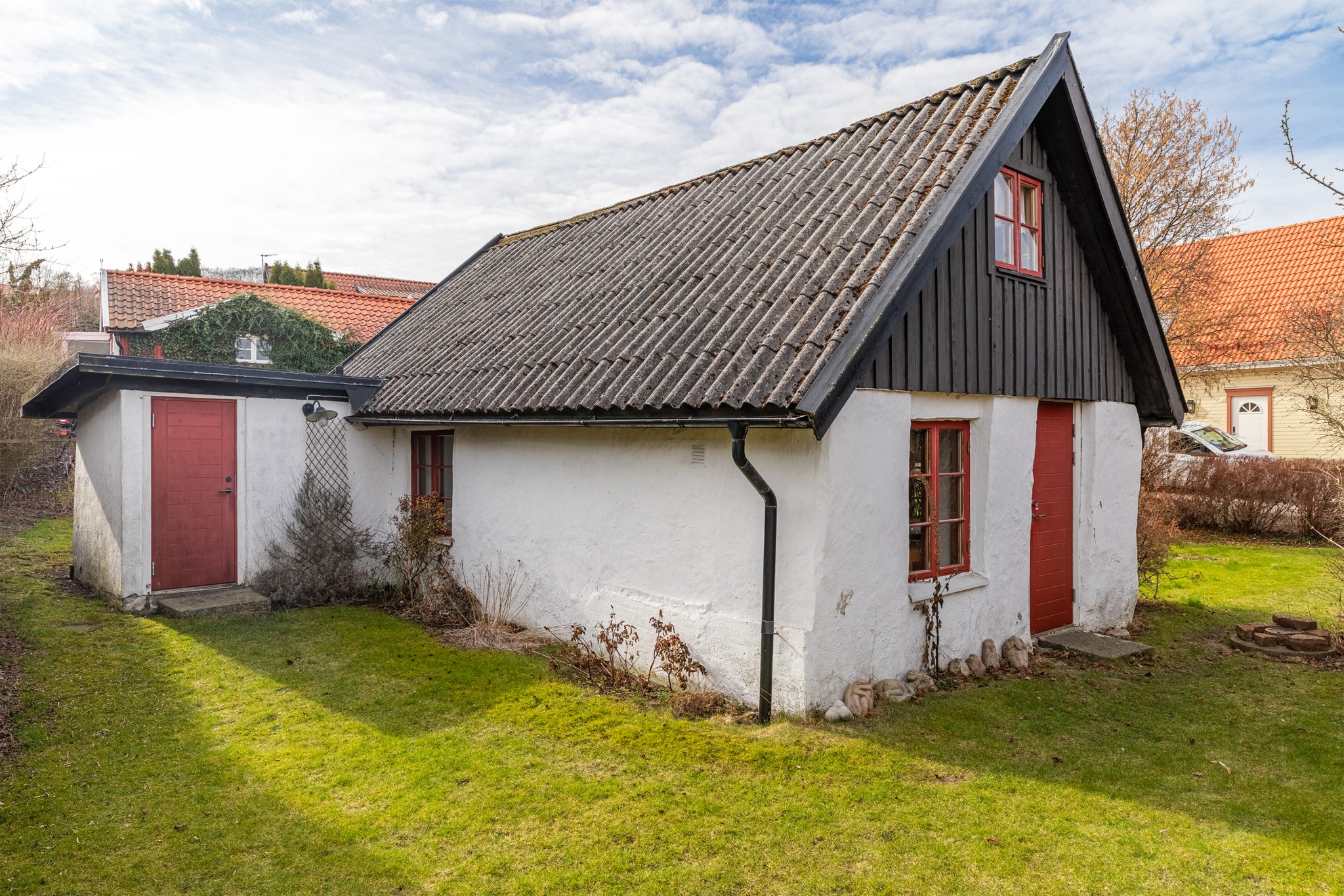 Det vita lilla stenhuset i gränden med den söta tomten påminner dig förmodligen om en saga som någon läst för dig för längesen. Sagan kan nu bli din att fortsätta skriva utifrån dina egna framtidsdrömmar. Denna charmiga boning erbjuder entréplan utgörande ett rum fördelat på kök, matplats och sällskapsrum. Sovplatser finns en trappa upp på vindsplan. Enkelt duschrum med wc finns i tillbyggnad som nås utifrån. Trädgården är lagom stor och bjuder in till umgänge för vänner och familj i härlig miljö. Ute på tomten förundras man över hur lugnt och privat det känns här, samtidigt som man är mitt inne i Båstads kärna. Det är kanske just det som gör denna undangömda lilla gata så speciell - kombinationen mellan den egna oasen i symbios med byns alla pärlor på behagligt promenadavstånd. Byggnaden bedöms idag ha ett kulturhistoriskt värde och ingår i en bevarandeplan från 1997. Med varsam handpåläggning kan denna pärla bli något alldeles extra. Varmt välkomna att boka er visning och upplev känslan!