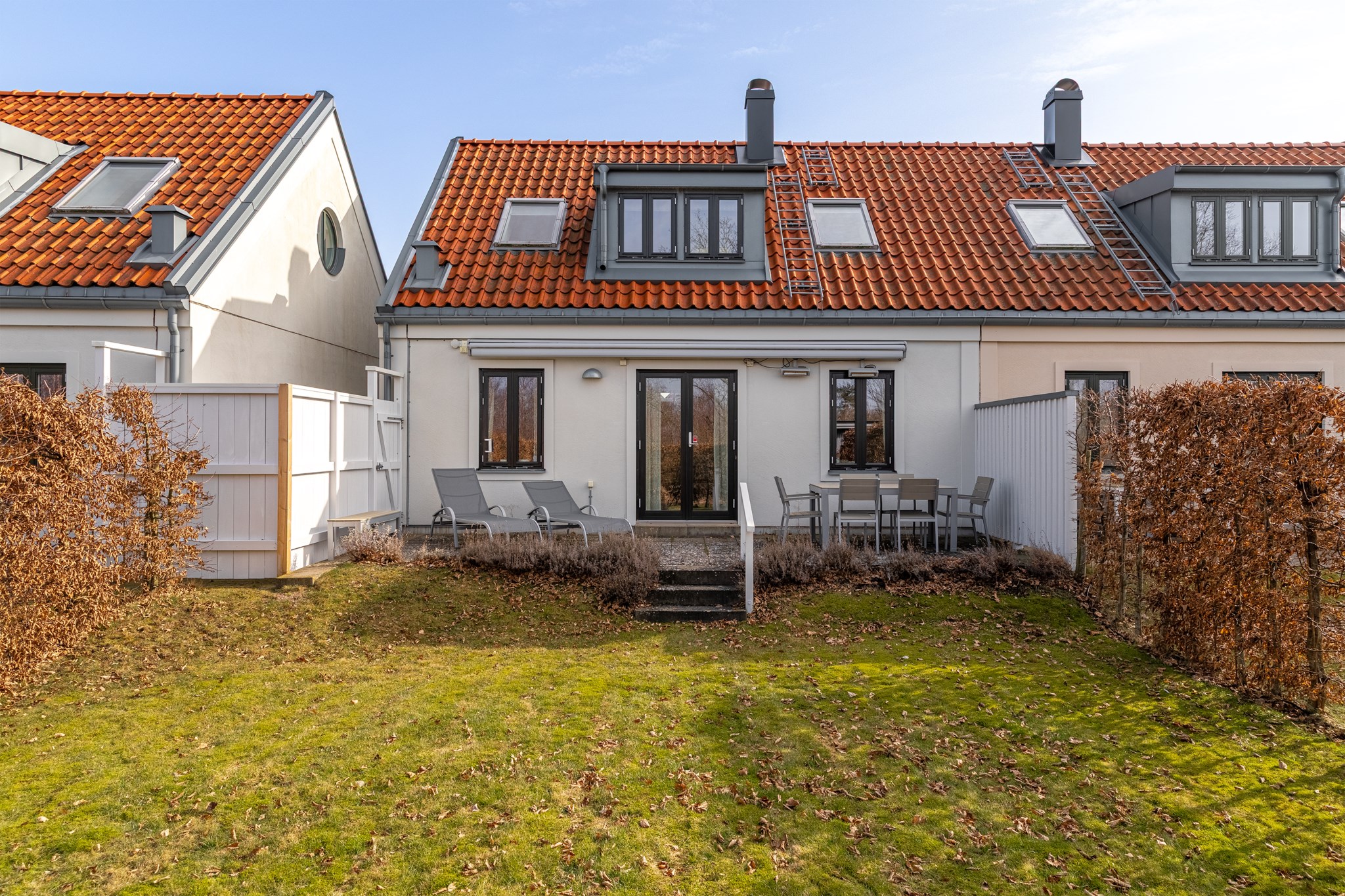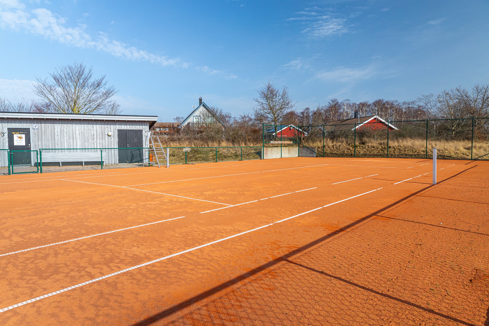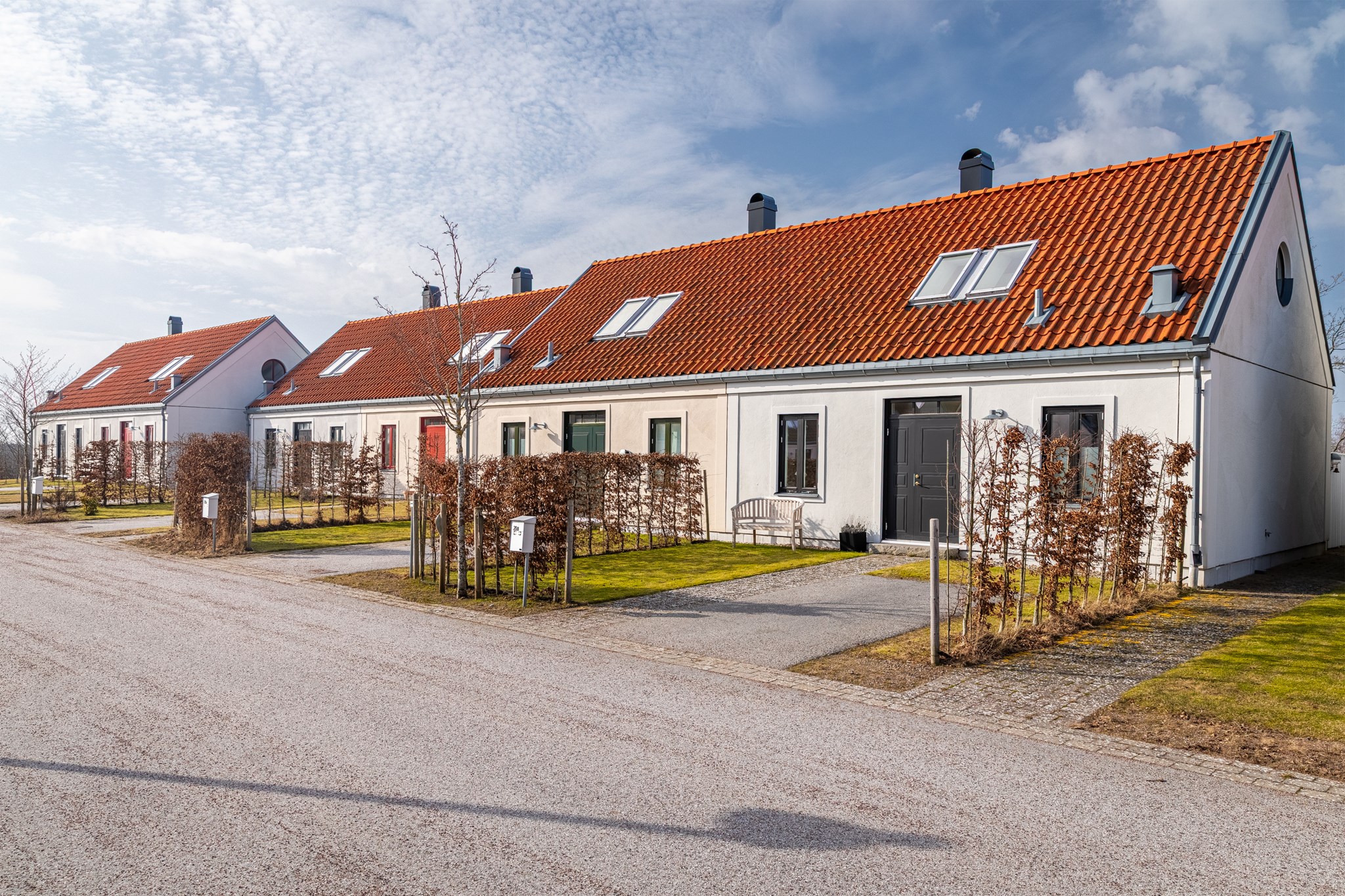 Vid söt liten bygata ligger detta innehållsrika parhus i klassisk skånelängastil. Med vackert putsad fasad, tak av återvunnet lertegel, smala fönster och öppet upp i nock på ovanplan presenteras denna kvadratsmarta semesterbostad för dig som vill ha tid över för annat. På skönt promenadavstånd når du såväl golfbana som hav, bad och Torekovs bykärna - utan att ta dig ut på stora vägen! Bostaden rymmer på entréplan sällskapsrum med eldstad och öppen planlösning mot kök. Utgång till altan i västerläge med eldriven markis. Sovrum samt bad/tvätt. En trappa upp finns 2 sovrum, liten möblerbar hall samt badrum. Trädgårdsförråd och bilplats kompletterar detta trevliga boende. Fina gemensamma utrymmen så som tennisbana, pool och härlig uteplats för det stora sällskapet.
