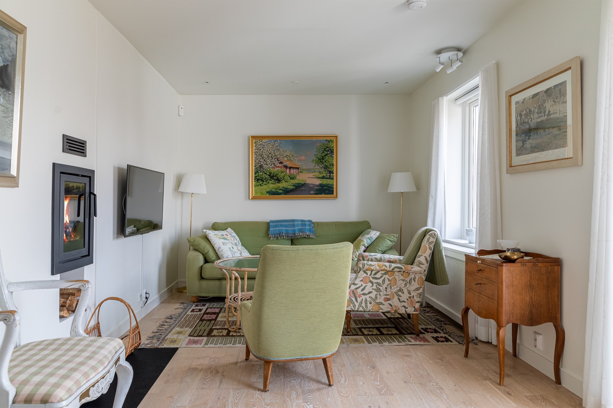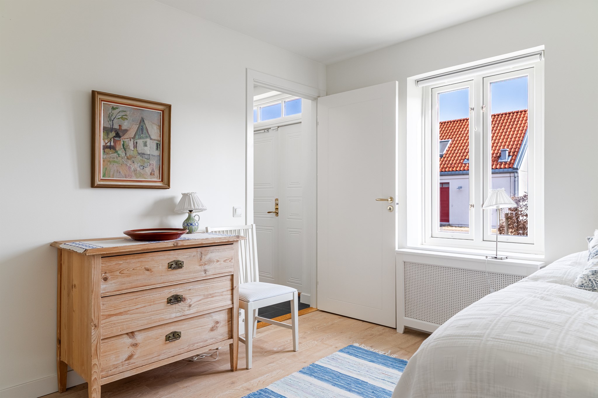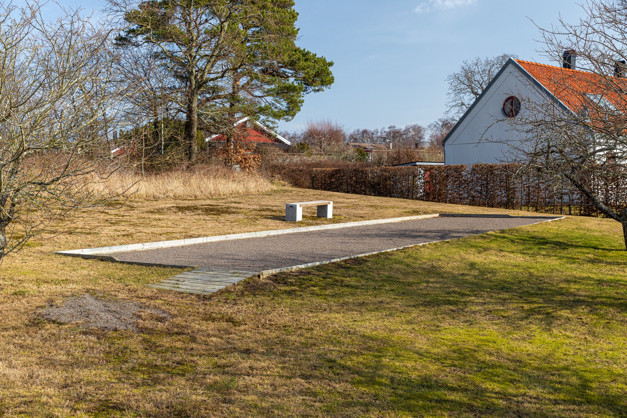 Vid söt liten bygata ligger detta innehållsrika parhus i klassisk skånelängastil. Med vackert putsad fasad, tak av återvunnet lertegel, smala fönster och öppet upp i nock på ovanplan presenteras denna kvadratsmarta semesterbostad för dig som vill ha tid över för annat. På skönt promenadavstånd når du såväl golfbana som hav, bad och Torekovs bykärna - utan att ta dig ut på stora vägen! Bostaden rymmer på entréplan sällskapsrum med eldstad och öppen planlösning mot kök. Utgång till altan i västerläge med eldriven markis. Sovrum samt bad/tvätt. En trappa upp finns 2 sovrum, liten möblerbar hall samt badrum. Trädgårdsförråd och bilplats kompletterar detta trevliga boende. Fina gemensamma utrymmen så som tennisbana, pool och härlig uteplats för det stora sällskapet.