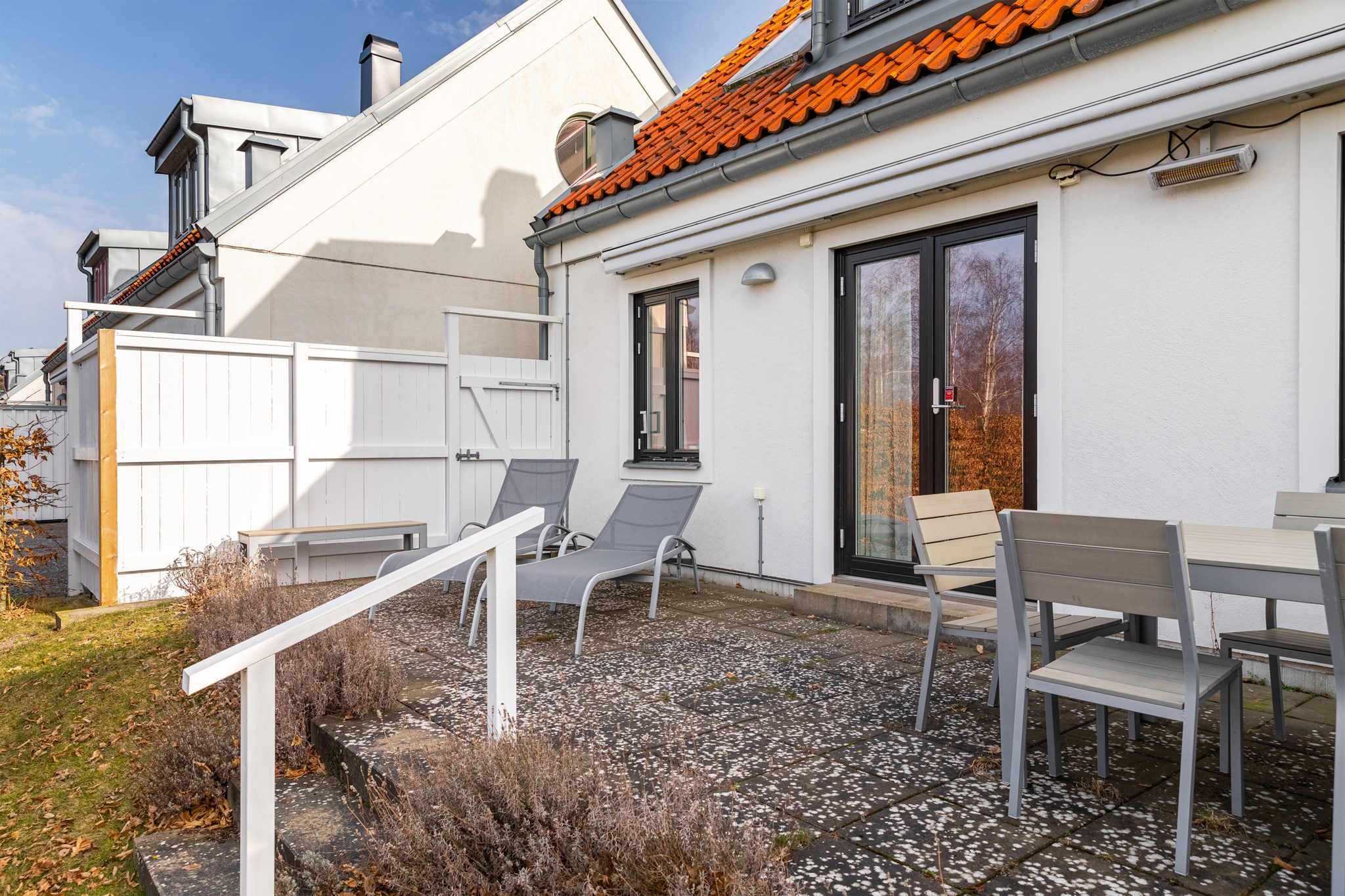 Byggnadstyp1½-plans parhusByggnadsår2017FönsterIsolerglasfönsterUppvärmningFrånluftsvärmepump till vattenburet systemVentilationMekanisk frånluftUteplatsStensatt uteplats i skönt västerläge med eldriven markis.BilplatsAsfalterad bilplats för en bil på husets framsida.Övriga utrymmenFörråd för trädgårdsredskap och utemöbler.TV- och internetanslutning