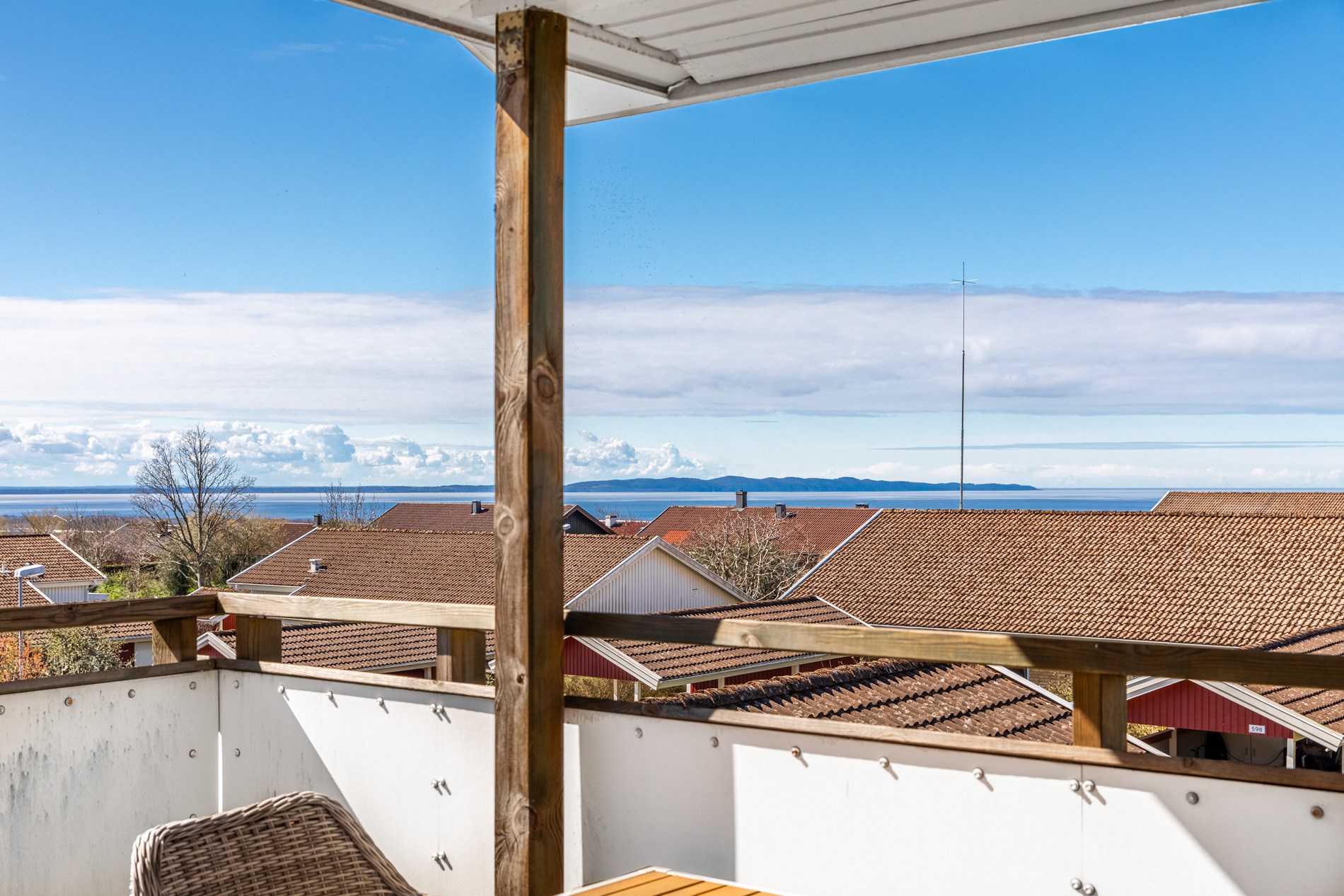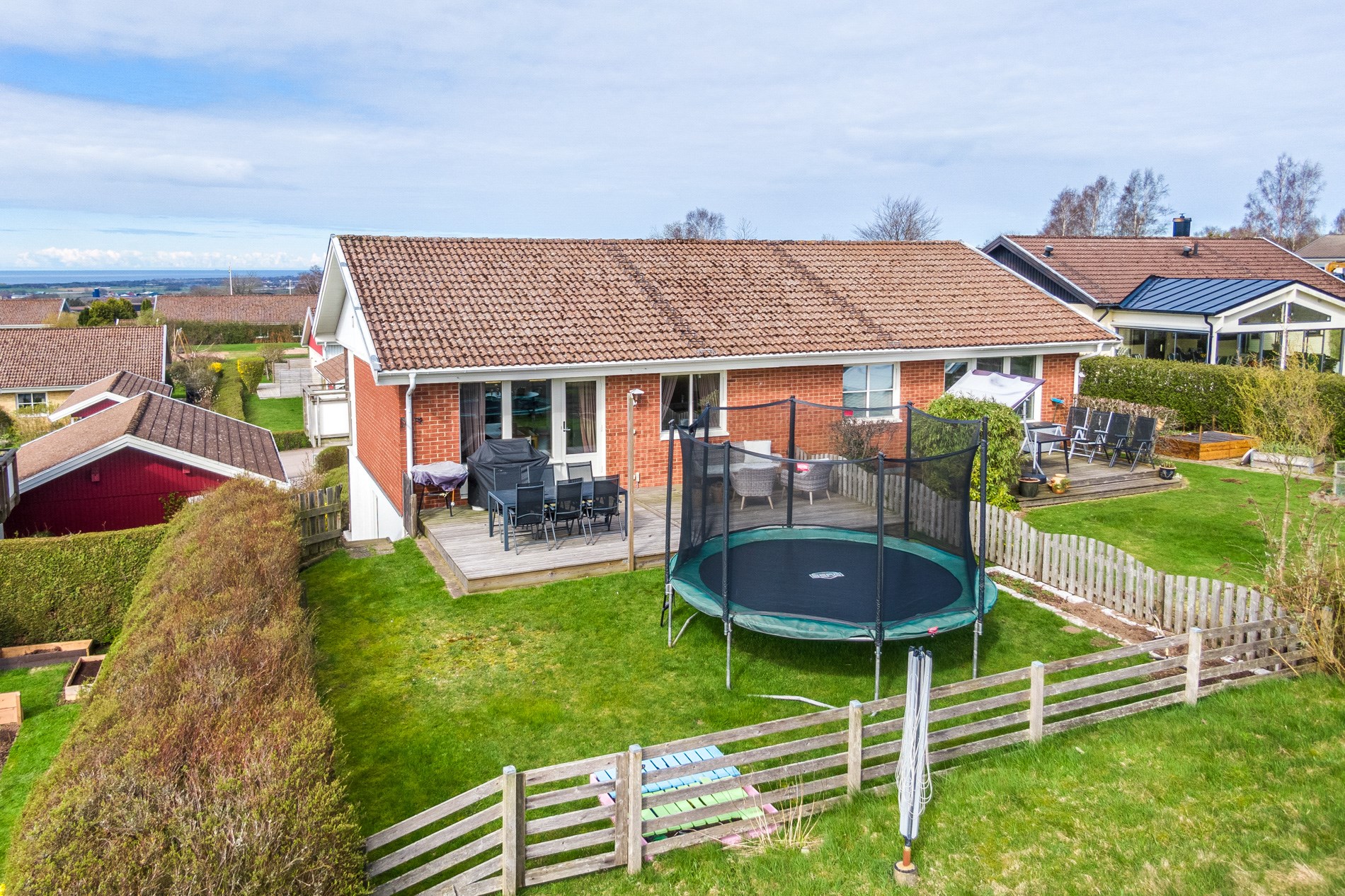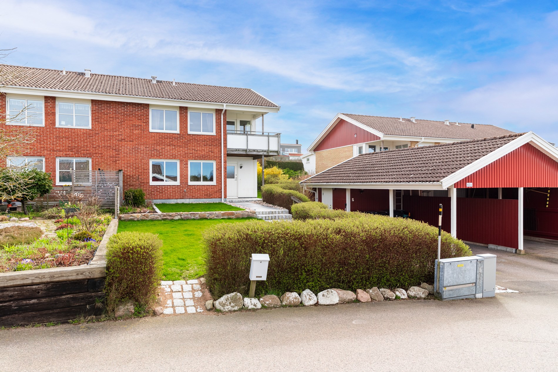 På högt, naturskönt läge i Grevie med fantastisk utsikt finns nu möjlighet att förvärva denna välplanerade bostad fördelad på två plan. Hemmets entréplan rymmer tre bra sovrum, badrum, tvättstuga samt klädkammare. Ovan trappen möts man av ljus och luftig planlösning där kök, vardagsrum och matplats smälter fint samman. Köket har access till generös balkong i sydväst med enastående utsikt över Kullaberg och Skälderviken och från vardagsrummet tar man klivet ut till uteplats och lättskött trädgård med plats för härliga frukostar i solen, lek och avkoppling. Boendet ligger med närhet till lekplats och grönområde. Carport och förråd finns för bekvämligheten liksom kommunikationer strax intill.