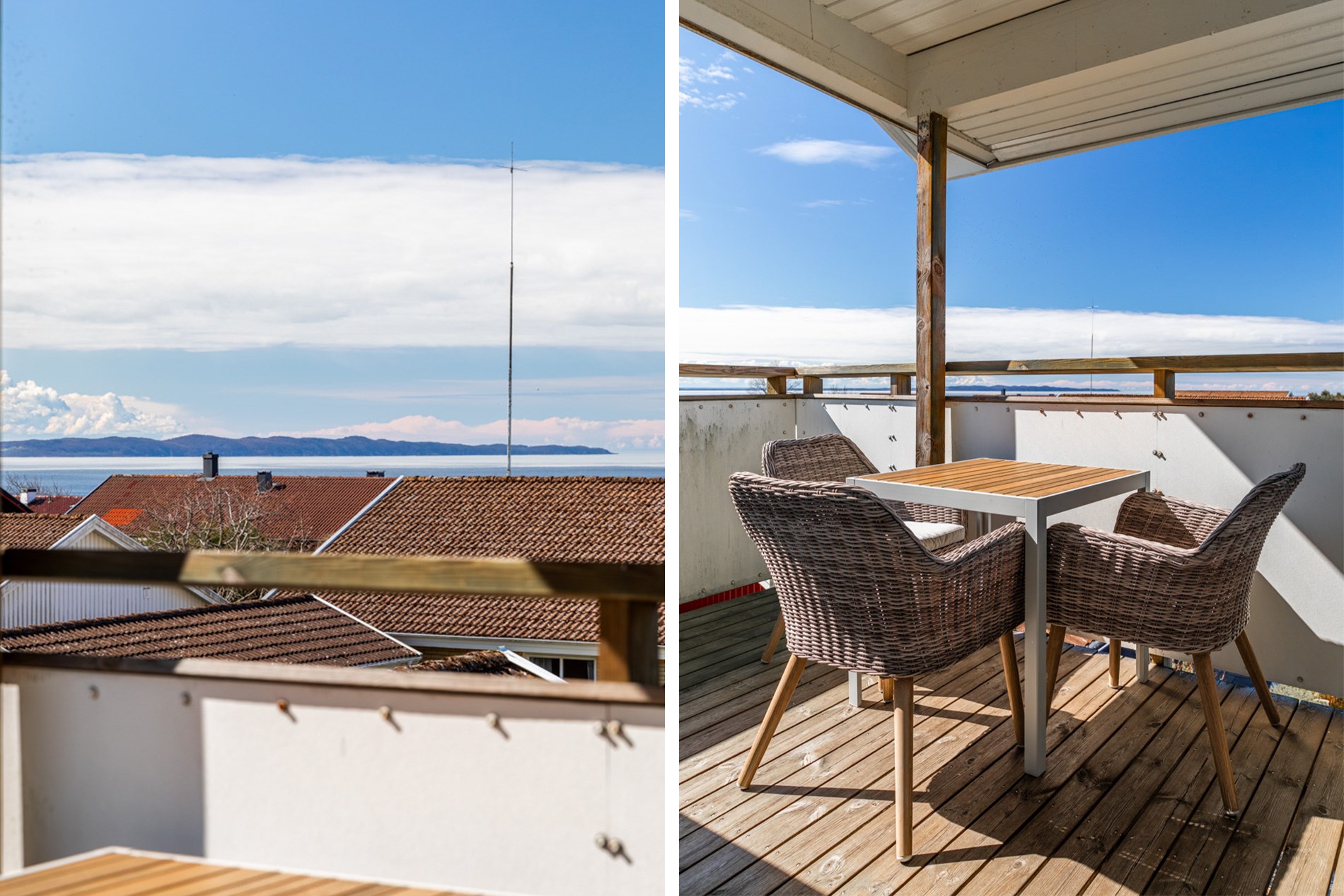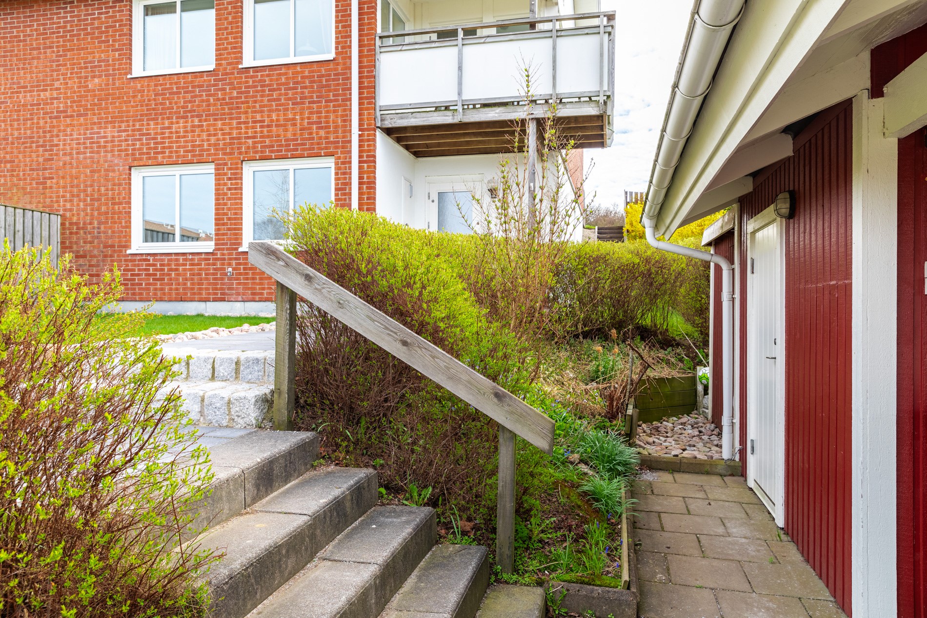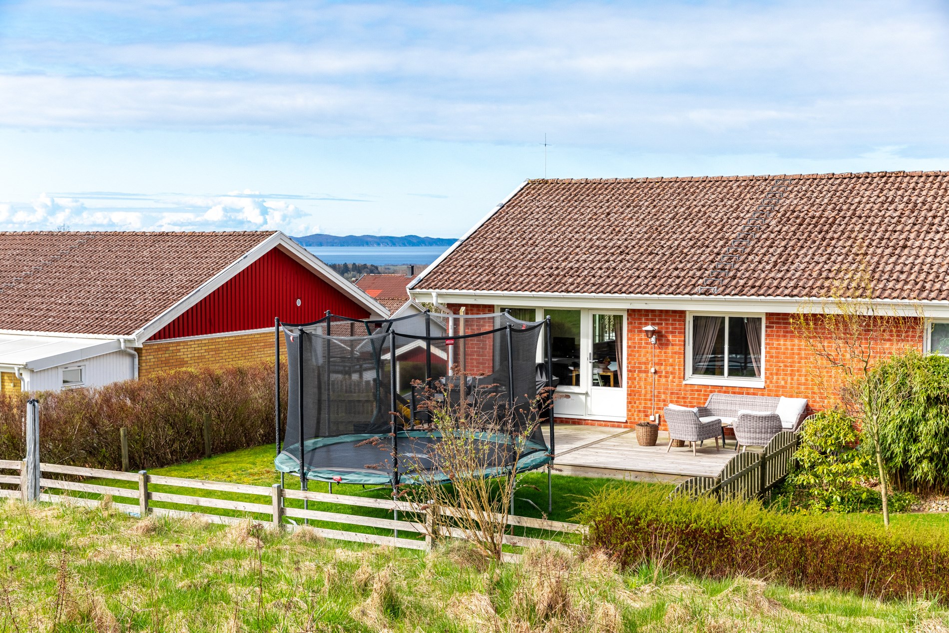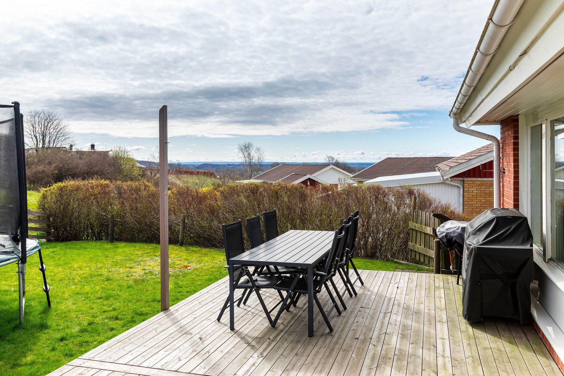 På högt, naturskönt läge i Grevie med fantastisk utsikt finns nu möjlighet att förvärva denna välplanerade bostad fördelad på två plan. Hemmets entréplan rymmer tre bra sovrum, badrum, tvättstuga samt klädkammare. Ovan trappen möts man av ljus och luftig planlösning där kök, vardagsrum och matplats smälter fint samman. Köket har access till generös balkong i sydväst med enastående utsikt över Kullaberg och Skälderviken och från vardagsrummet tar man klivet ut till uteplats och lättskött trädgård med plats för härliga frukostar i solen, lek och avkoppling. Boendet ligger med närhet till lekplats och grönområde. Carport och förråd finns för bekvämligheten liksom kommunikationer strax intill.